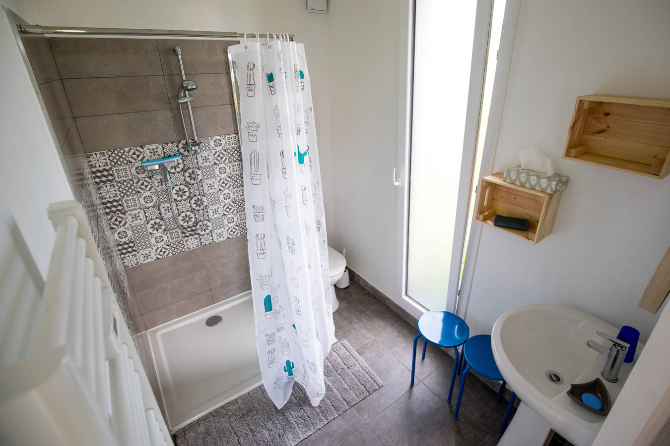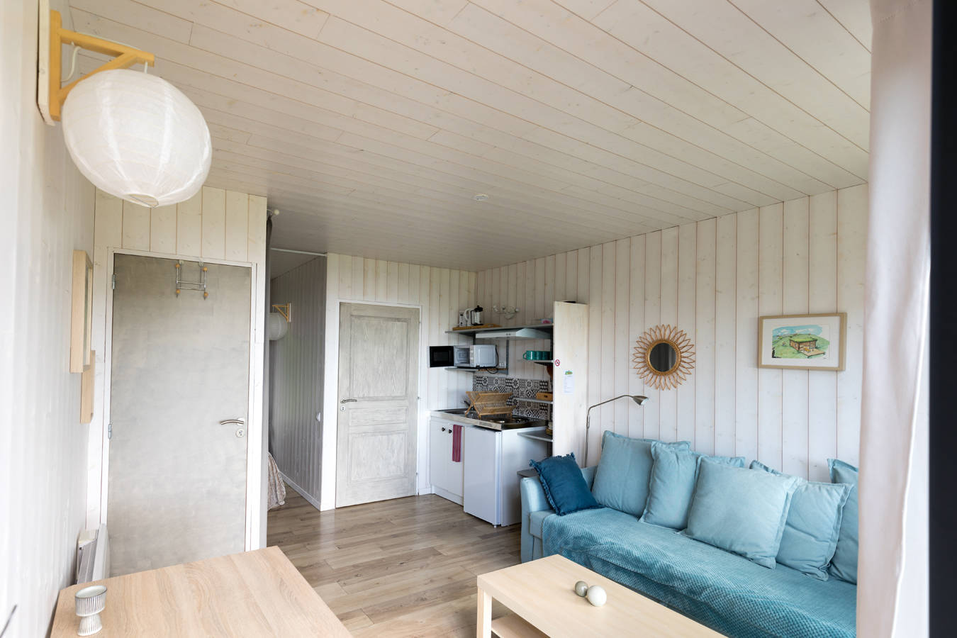 Les greens sont 4 maisonnettes lumineuses en bois de 24m², pour 2 à 4 personnes, dont 1 accessible aux personnes à mobilité réduite, avec toit végétal, terrasse, kitchenette, salle de bain et WC, coin nuit avec 1 lit double, coin salon avec 1 canapé lit 2 places.