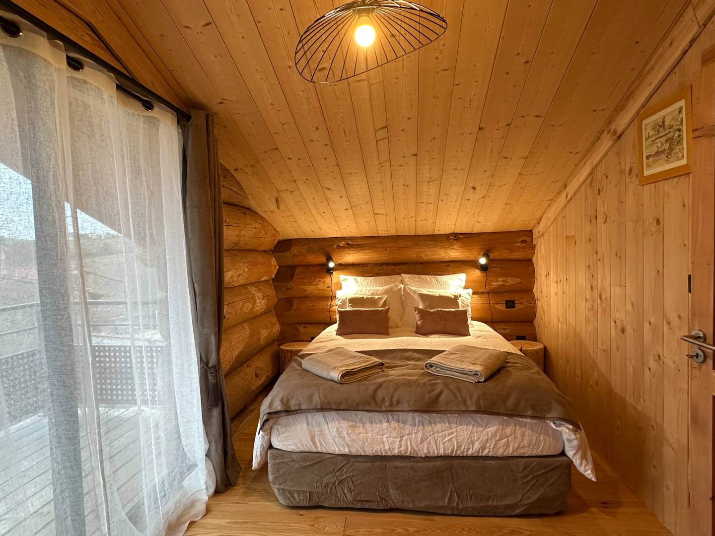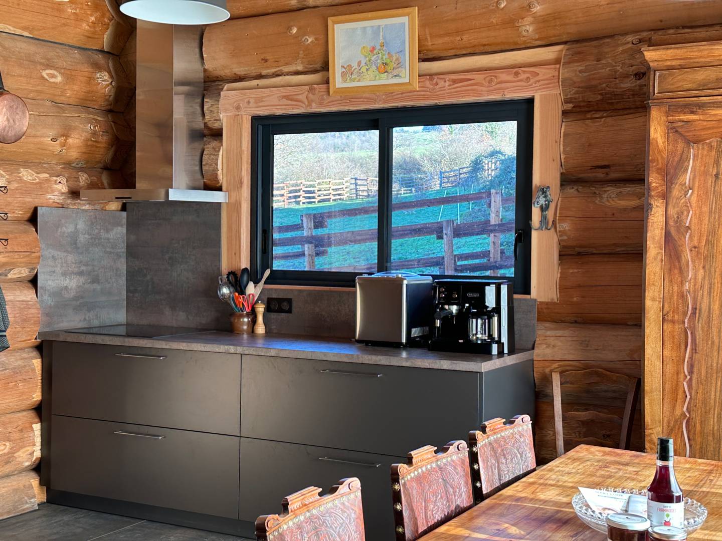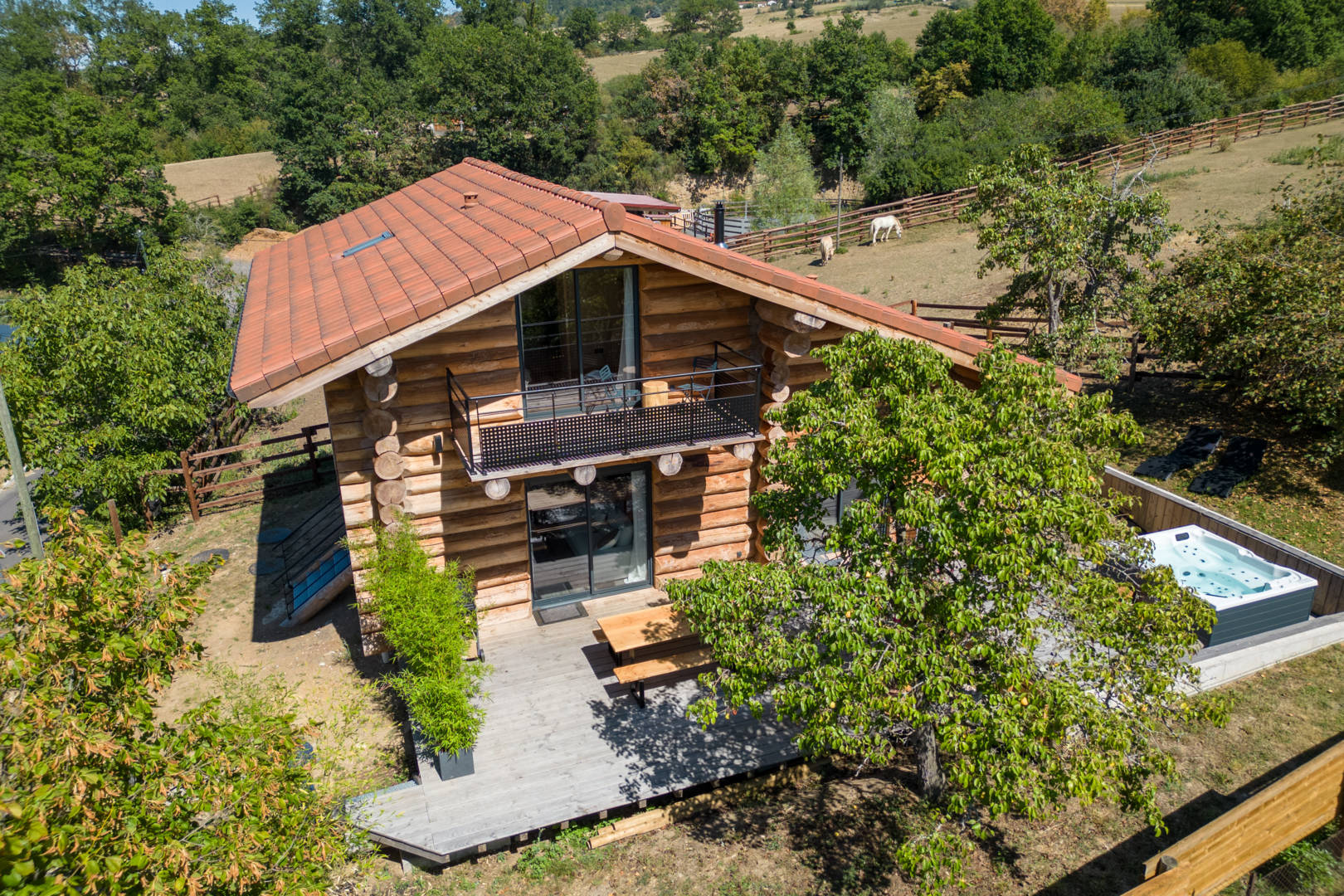 Nous avons conçu ce chalet en rondins de bois brut (fuste) en 2023 comme un refuge chaleureux où vous pourrez vous détendre et vous ressourcer. Nous souhaitons proposer un séjour de qualité, atypique dans un cadre idyllique pour vous faire découvrir notre belle région qu’est l’Auvergne et si vous le souhaitez, notre élevage de chevaux Fjords !