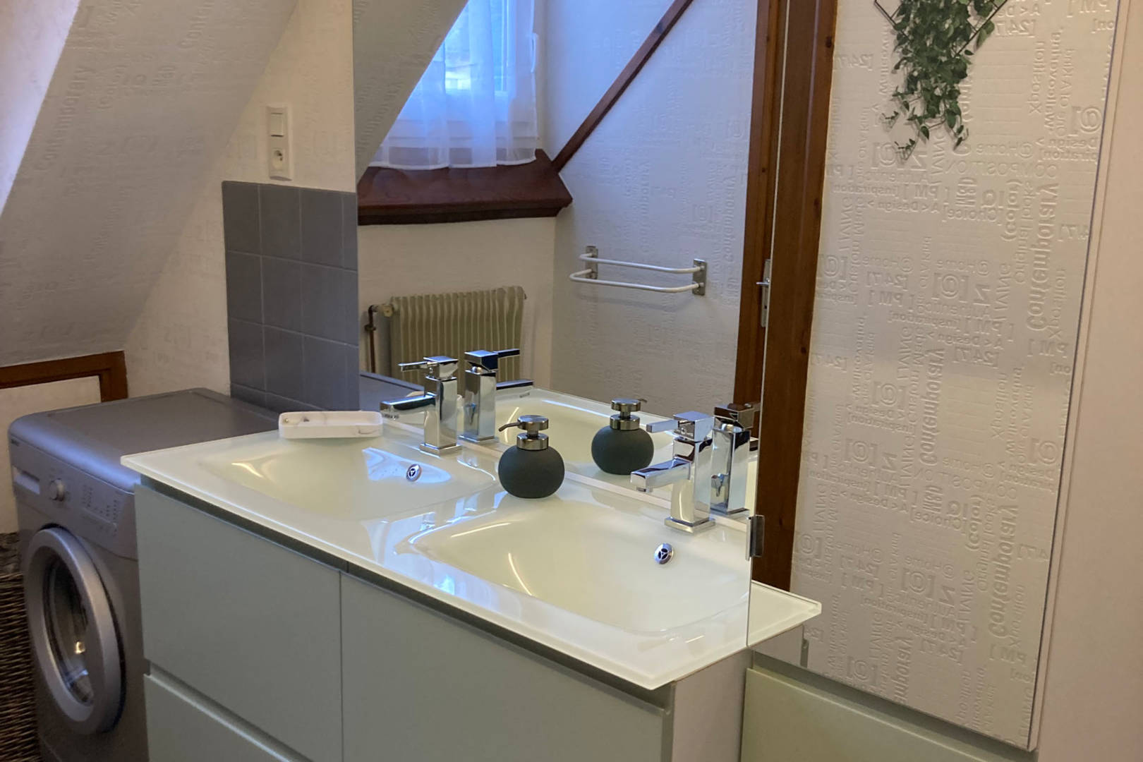 Il est composé d’une chambre tout confort pour deux personnes avec une grand armoire, une grande salle de bain avec double vasque, machine à laver, et une cabine de douche hydro-massante.