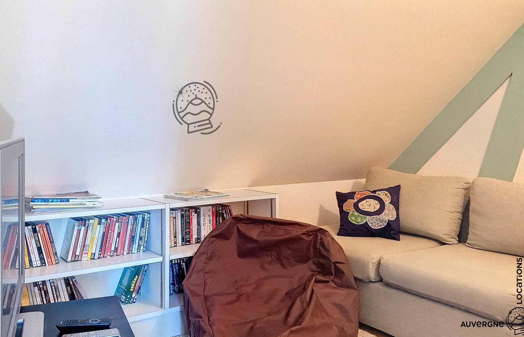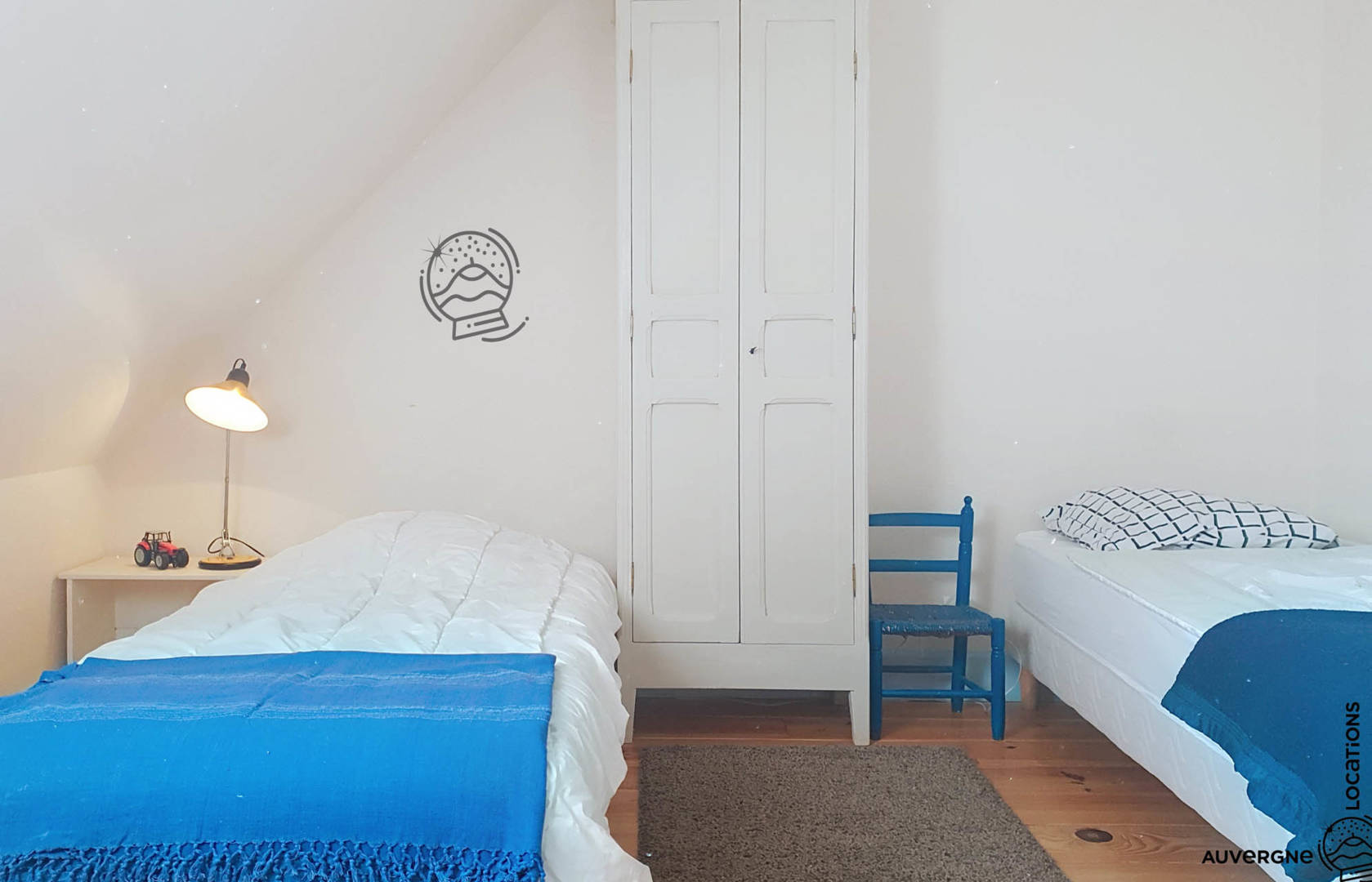 A l’étage se trouvent 4 chambres et une salle de bain avec WC, une chambre lit double (140), une chambre avec deux lits simples (90), une chambre avec 2 lits simple (90) plus un lit bébé (0-2 ans), une chambre avec lit double (140) plus un lit enfant (3-5 ans) et un espace sous pentes qui servira de coin TV pour vos enfants