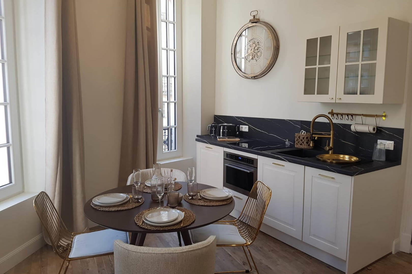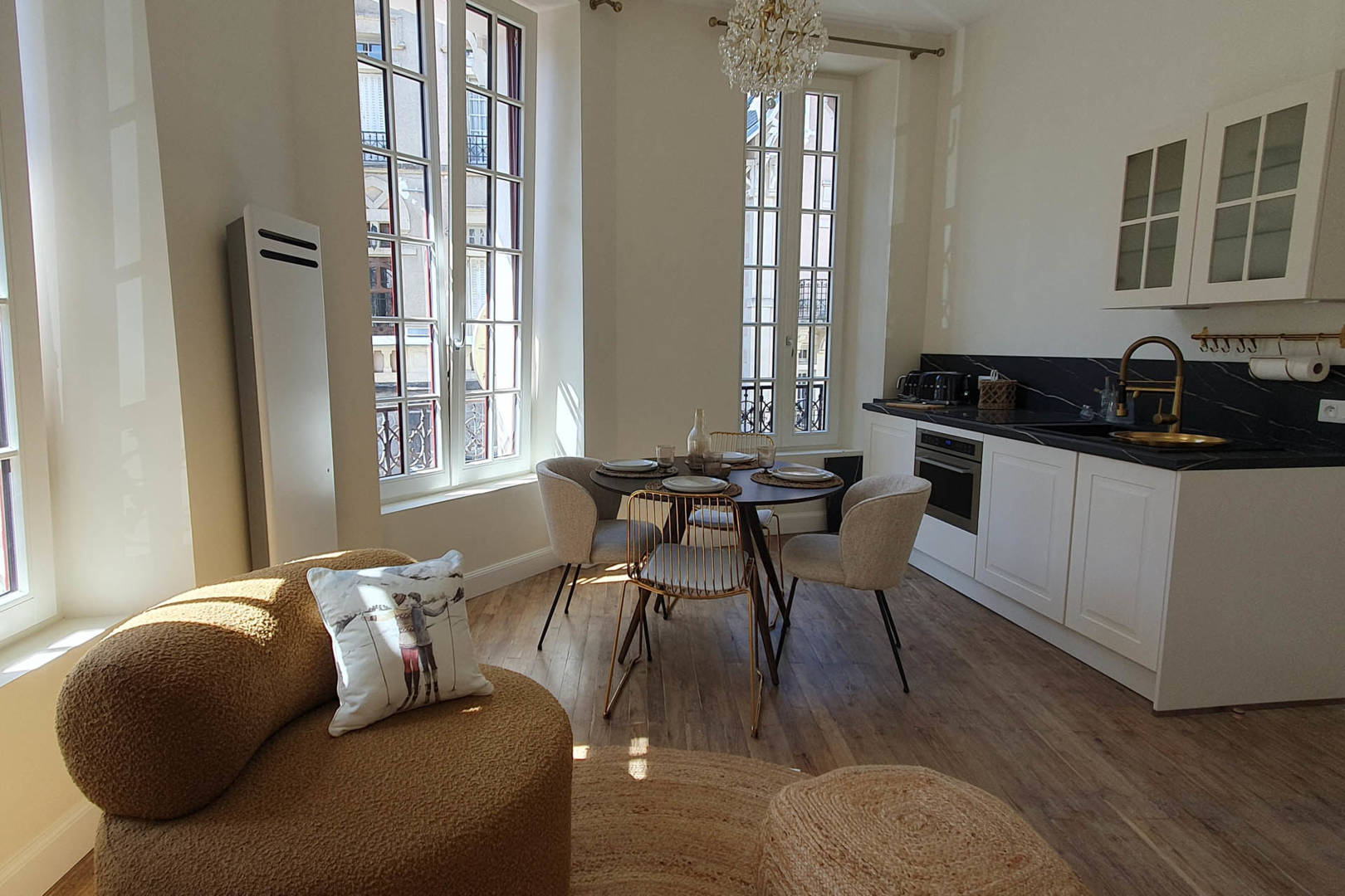 À 100 mètres des Grands Thermes, la Villa Charlotte vous accueille dans un appartement spacieux et lumineux, inspiré de l’esprit Gatsby, où charme vintage et confort moderne se conjuguent pour un séjour thermale ou touristique agréable et reposant. Idéal pour une cure en couple ou accompagné, cet appartement offre de beaux volumes et un environnement calme, propice au repos entre les soins. Il se compose : • d’un séjour cosy avec cuisine équipée, • de deux chambres élégantes, • d’une salle d’eau avec wc. Situé en rez-de-chaussée surélevé, avec vue sur les montagnes, il bénéficie d’un emplacement privilégié permettant de se rendre aux thermes, aux commerces et au Parc Fenestre sans utiliser la voiture. Grâce à ses deux chambres et à ses beaux volumes, cet appartement est aussi parfait pour un séjour touristique en famille ou entre amis. Que ce soit pour un week-end nature, des vacances au grand air ou un séjour détente, la Villa Charlotte offre un point de départ idéal pour explorer La Bourboule, le Parc Fenestre et les volcans d’Auvergne. Tarif Séjours touristiques ou mini-cure : nous contacter ! • Hors vacances scolaires : à partir de 130 € la nuit • Vacances scolaires et long week-end : à partir de 150 € la nuit • Réduction de 10% à partir de 7 nuits ou plus • Petit-déjeuner « Les Matins gourmands de la Villa Charlotte » en option : 10 € par personne/jour (facturation supplémentaire à la réservation ou à régler sur place) Tarif spécial cure thermale (hors taxe de séjour) : sur demande ! • Cure 21 nuits hors vacances scolaires : 1.300 € sur demande • Cure 21 nuits vacances scolaires avril et juillet : 1.450 € sur demande • Cure 21 nuits vacances scolaires août : non disponible Un appartement élégant et confortable, pensé pour les curistes souhaitant conjuguer bien-être, espace et qualité de vie pendant leur séjour à La Bourboule.