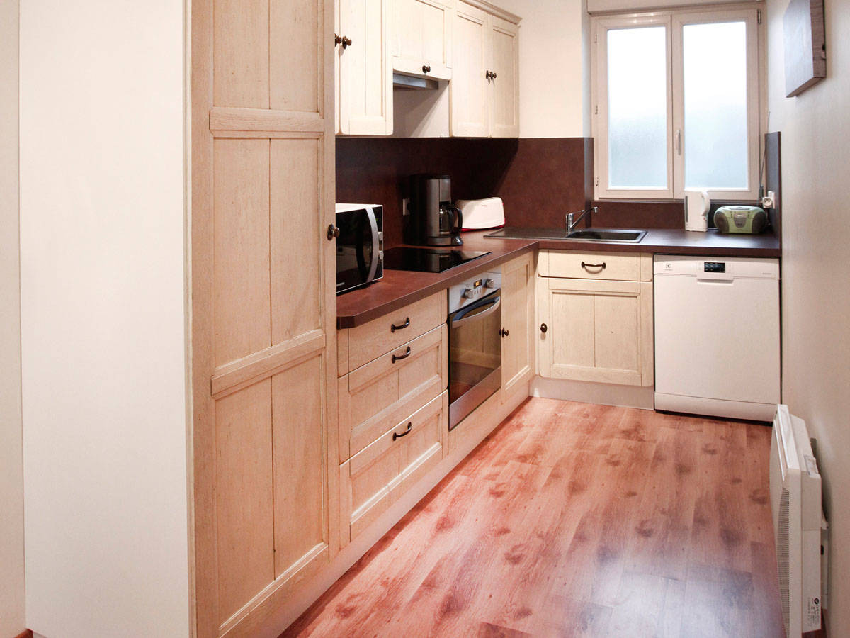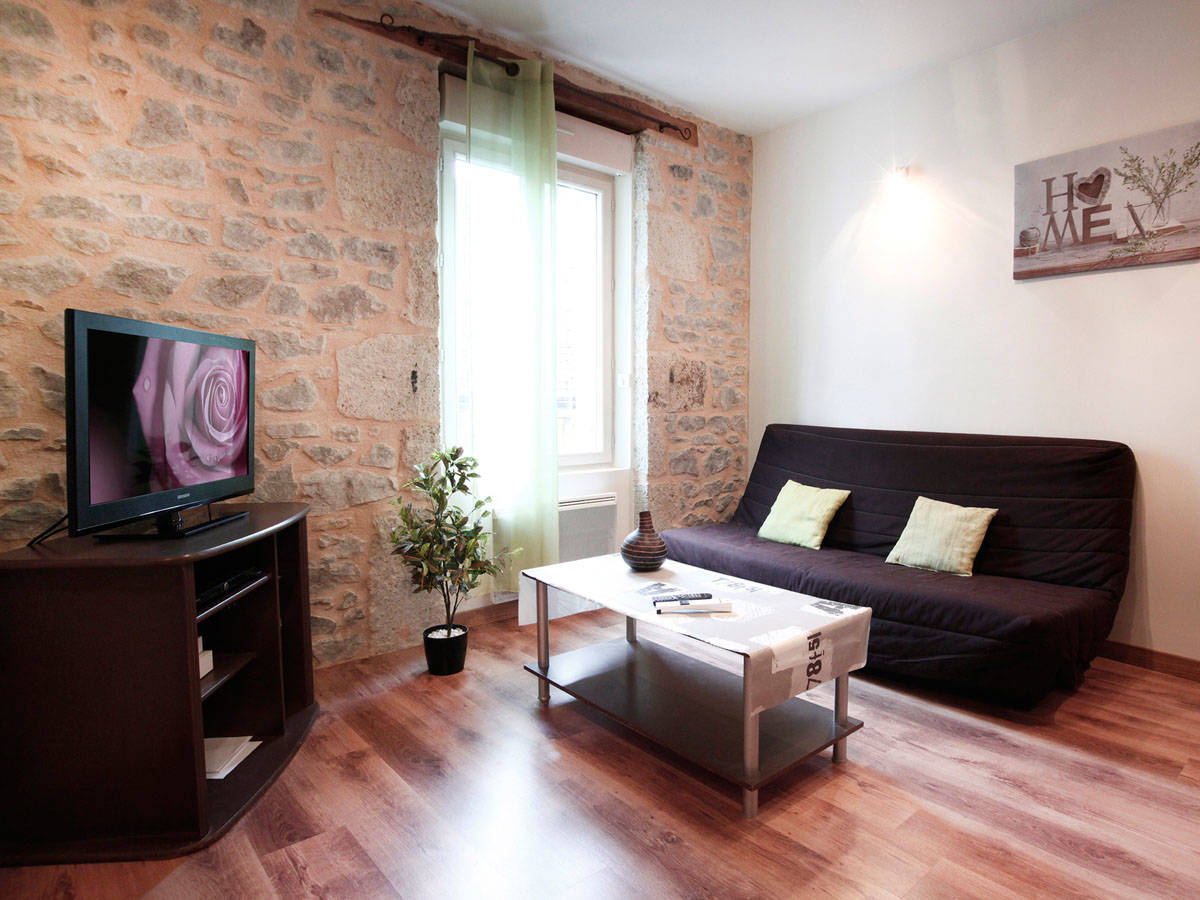 Appartement neuf à 300m du centre, comprenant une cuisine américaine entièrement équipée, salon avec clic-clac, télé écran plat, accès Internet, lecteur DVD.