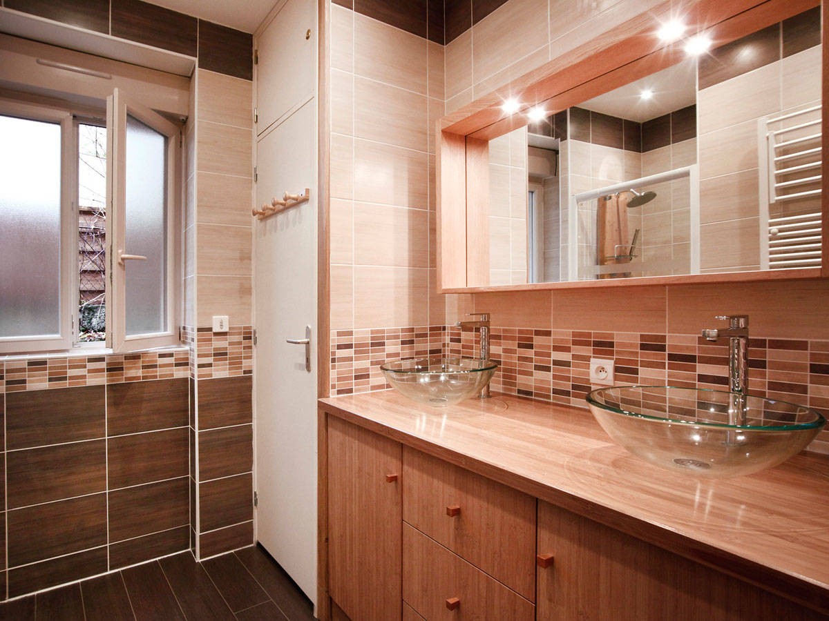 Coin nuit : lits superposés 90. double vasque, douche.