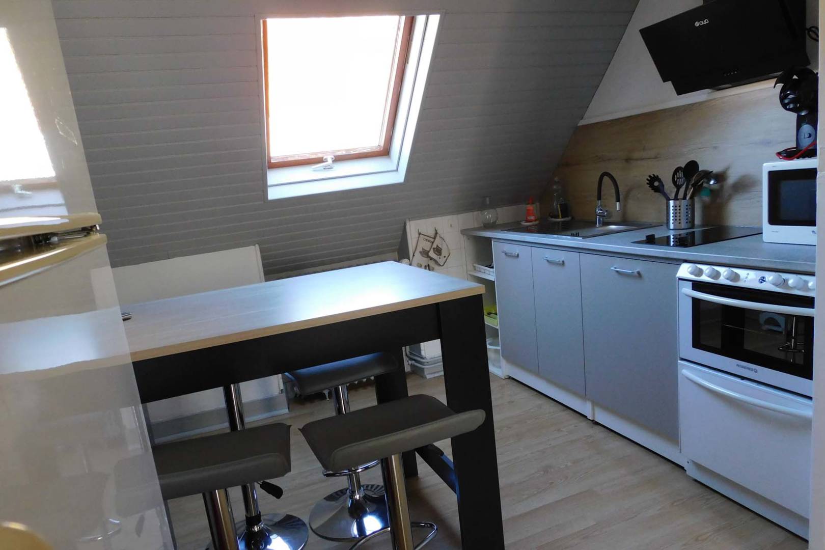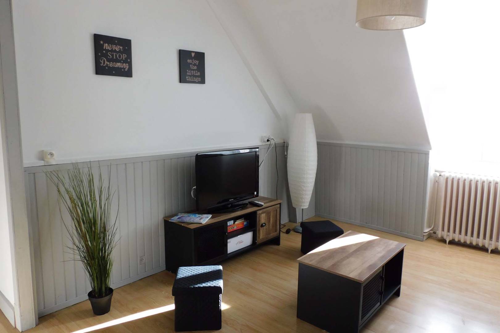 Composé d’une cuisine équipée ouverte sur le salon avec télévision, une chambre avec un lit double et un lit superposé et une salle de bain. L’accès au logement se(…)