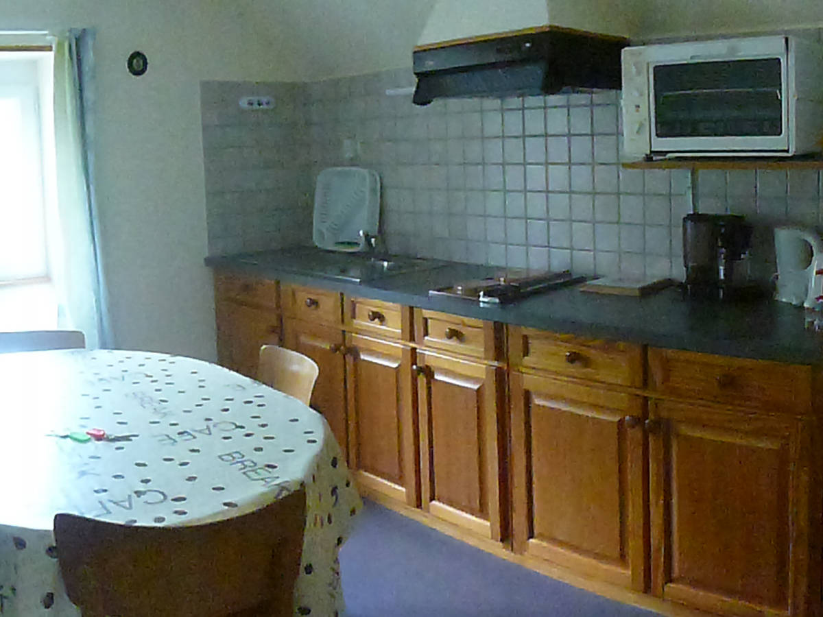-d’une pièce principale avec cuisine aménagée (four, frigo, micro-onde, plaques,…) un coin salon avec canapé clic-clac télé lecteur dvd et accès wifi