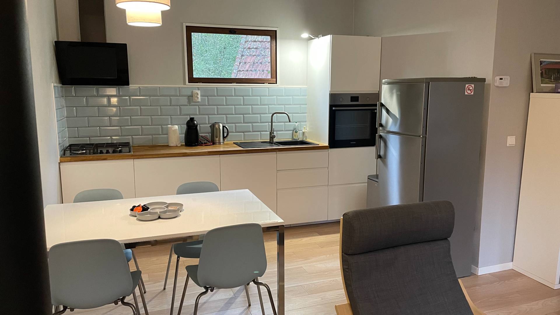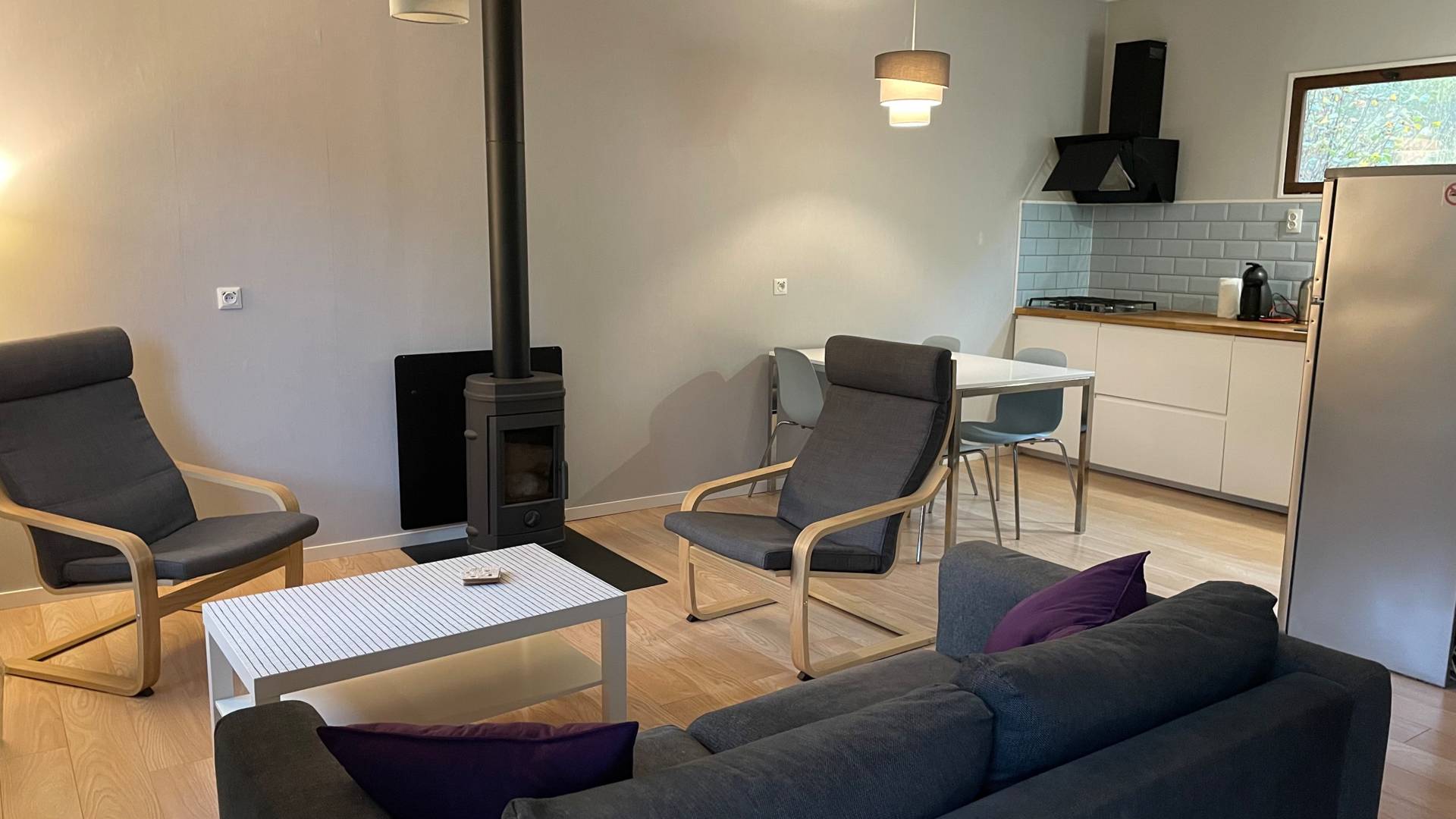 Dans notre gîte 2/4 personnes de 50m2 vous trouverez une cuisine luxueusement équipée, une salle d’eau spacieuse et 2 chambres. Les lits sont faits et un paquet de serviettes est fourni. Dans la maison, vous trouverez une cuisine équipée d’un four, d’un lave-vaisselle, d’une plaque de cuisson 4 feux gaz, d’une bouilloire électrique et d’une cafetière Dolce Gusto. Une cafetière est à disposition des clients qui aiment boire du café filtre, merci de nous en informer. Il y a un jardin clos, équipé de chaises basses et salon de jardin, vous pourrez bien sûr également profiter du reste de notre jardin et de notre petite forêt. Il y a un cabanon pour ranger vos vélos par exemple. Un barbecue est également disponible.