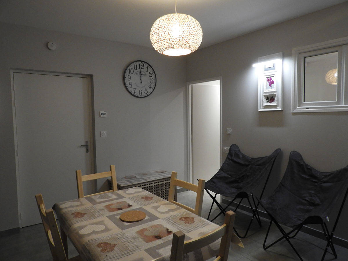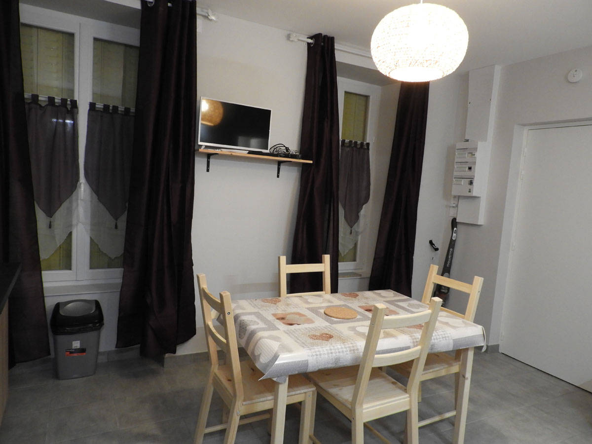 Ce meublé comprend : – Un coin cuisine équipée avec four et un micro-ondes, une plaque à induction, un frigo, un lave-vaisselle et divers appareils ménagers et ustensiles de cuisine. – Le séjour comprend un canapé clic-clac se transformant en 2ème couchage (2 places). – Une chambre avec un lit confortable et un coin dressing. La chambre a une fenêtre interne qui ne donne pas directement sur la rue donc très calme. – Un cabinet de toilette avec douche à l’italienne, WC, (un sèche-cheveux est laissé à disposition, ainsi que tout le matériel nécessaire pour l’entretien courant de l’appartement y compris les produits ménagers).