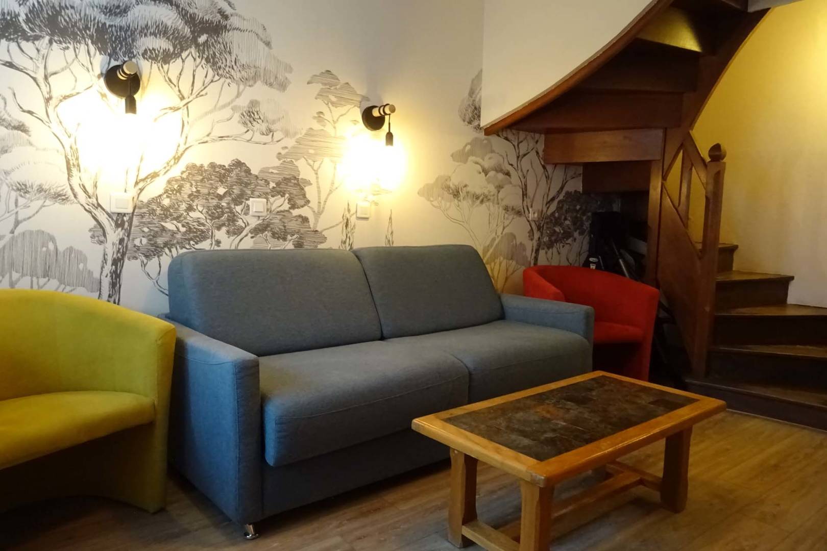 Au 1er étage : d’un salon avec 1 canapé convertible (2 couchages 160) et 1 canapé avec lit gigogne (2 couchages), d’une chambre avec 1 lit de 140 (2 couchages) avec couettes et armoire, d’une chambre avec 1 lit de 90, 1 lit de 90 et un lit gigogne de 90 (3 couchages) avec couettes et armoire, d’un WC indépendant, d’une salle de bain équipée d’une douche, d’un lavabo.