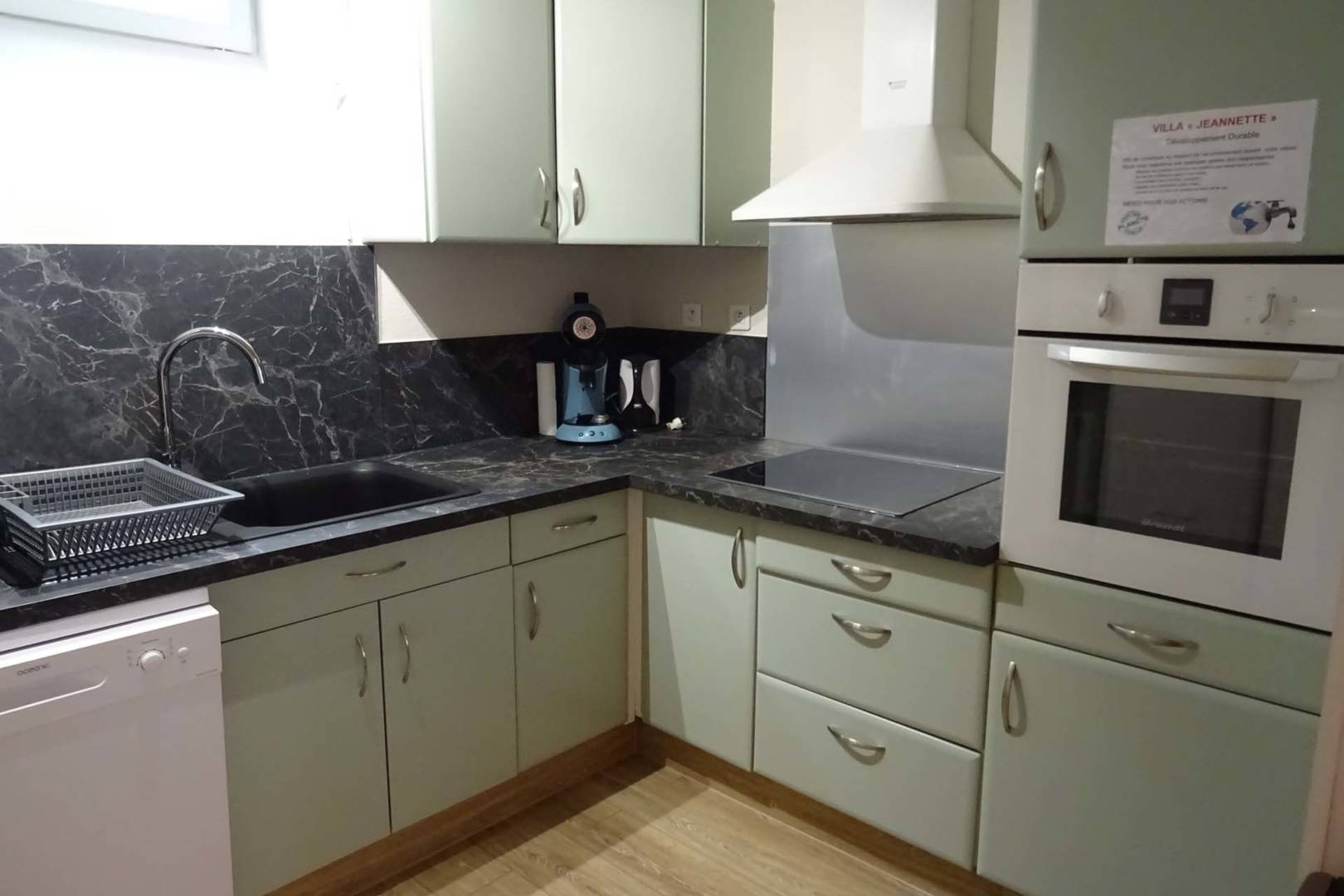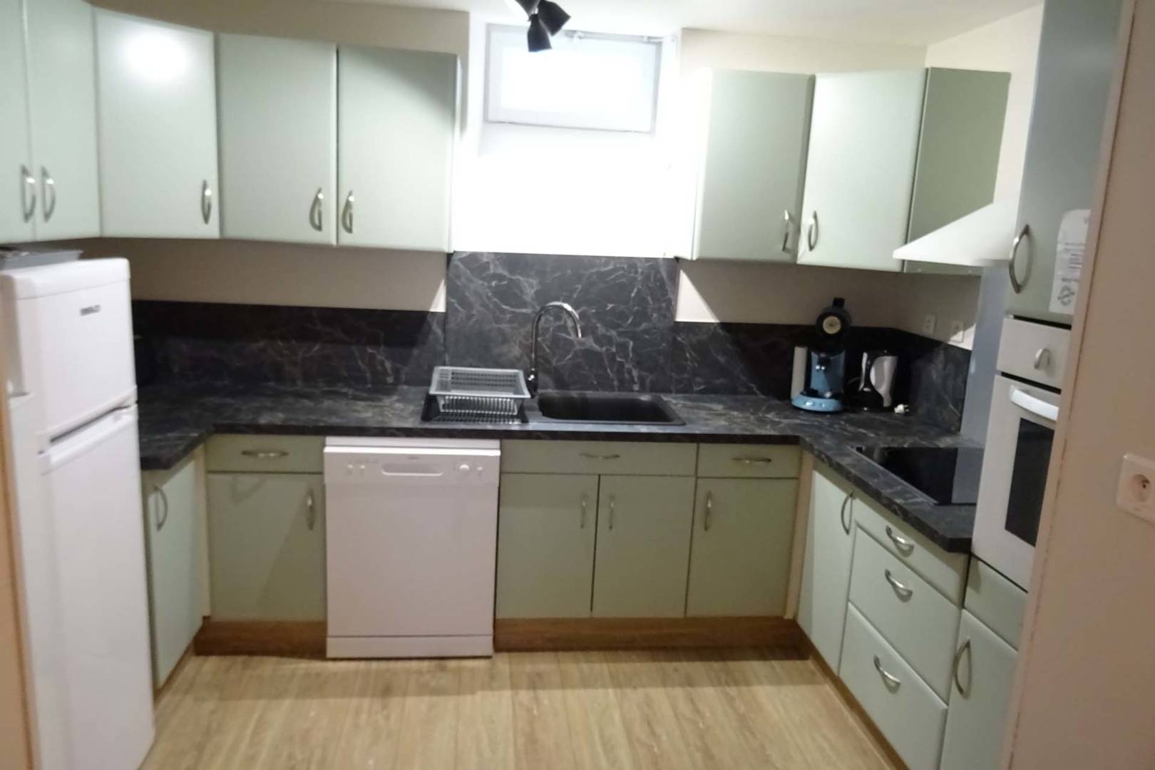 Au rez de jardin : d’une cuisine ouverte sur salle à manger, équipée d’un lave vaisselle, 2 réfrigérateurs, plaque vitro céramique, four, micro-ondes, cafetière électrique, bouilloire, toaster, fer à repasser; d’un salon, avec 1 canapé convertible (2 couchages 140) et 3 fauteuils, d’une télévision écran plat, d’une salle de bain (lavabo, douche et toilette), d’un coin buanderie avec machine à laver.