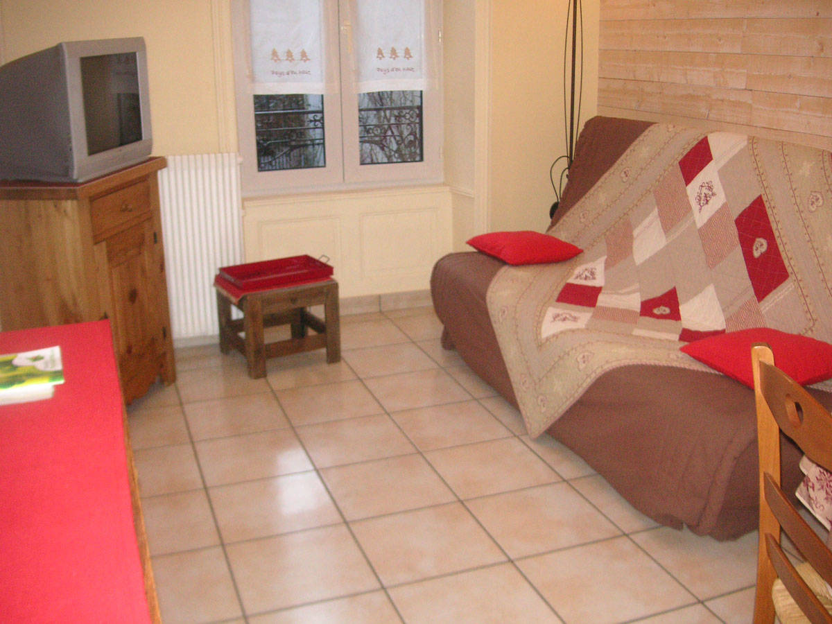 Il se compose ainsi : un séjour/cuisine donnant sur le jardin, une chambre comprenant un lit de140 cm et deux lits superposés de 90 cm, une salle d’eau et un WC indépendant. Jardin clos avec salon de jardin privatif. Une personne supplémentaire acceptée gratuitement dans le clic-clac. Lave-linge et sèche-linge dans la buanderie au sous-sol communs aux trois appartements. Chauffage et charges inclus. Parking privé devant le gîte. Brigitte et Gérard, les propriétaires, habitent sur place et restent à votre disposition pour le bon déroulement de votre séjour.