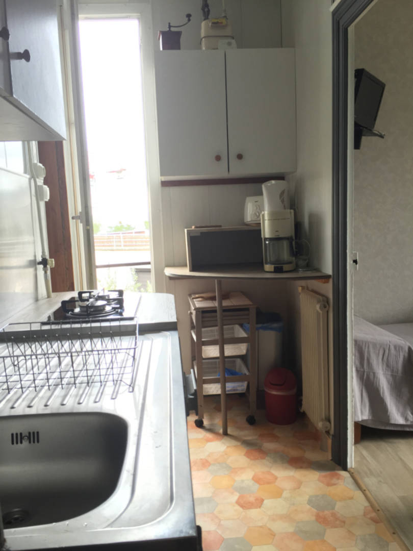 Petite cuisine bien équipée indépendante de la pièce principale avec vue dégagée au Nord.
