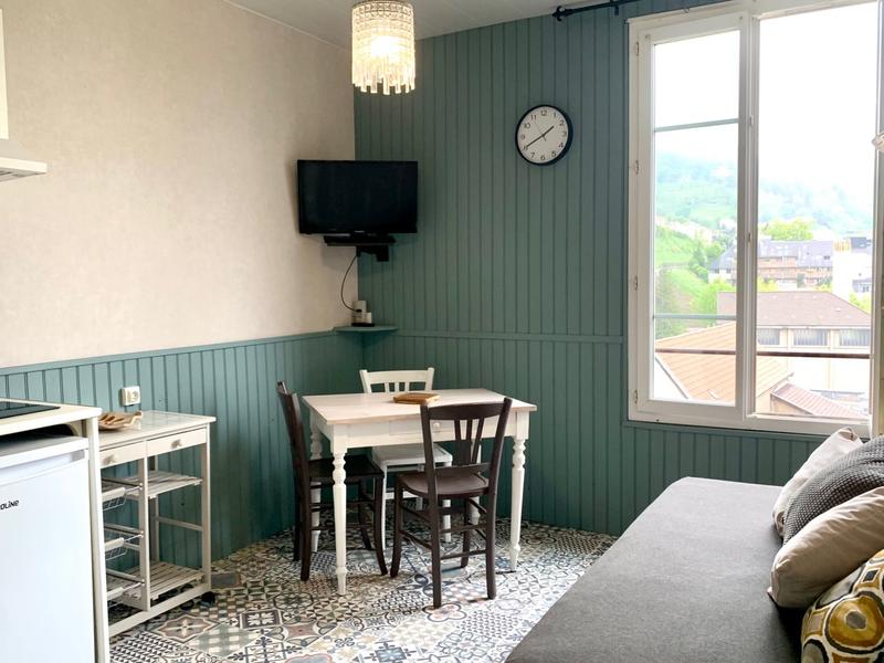 Tout confort . Bien agencé, bien équipé, literie récente ferme. entrée et Salle de bain séparés. Wifi, Lecteur DVD, Double vitrage phonique. Chauffage compris. lave-linge commun gratuit . Proche Thermes, Commerces, Navettes, bus, gare, Royatonic, Théâtre, Eglises et Casino. Stationnement libre et gratuit devant la maison.