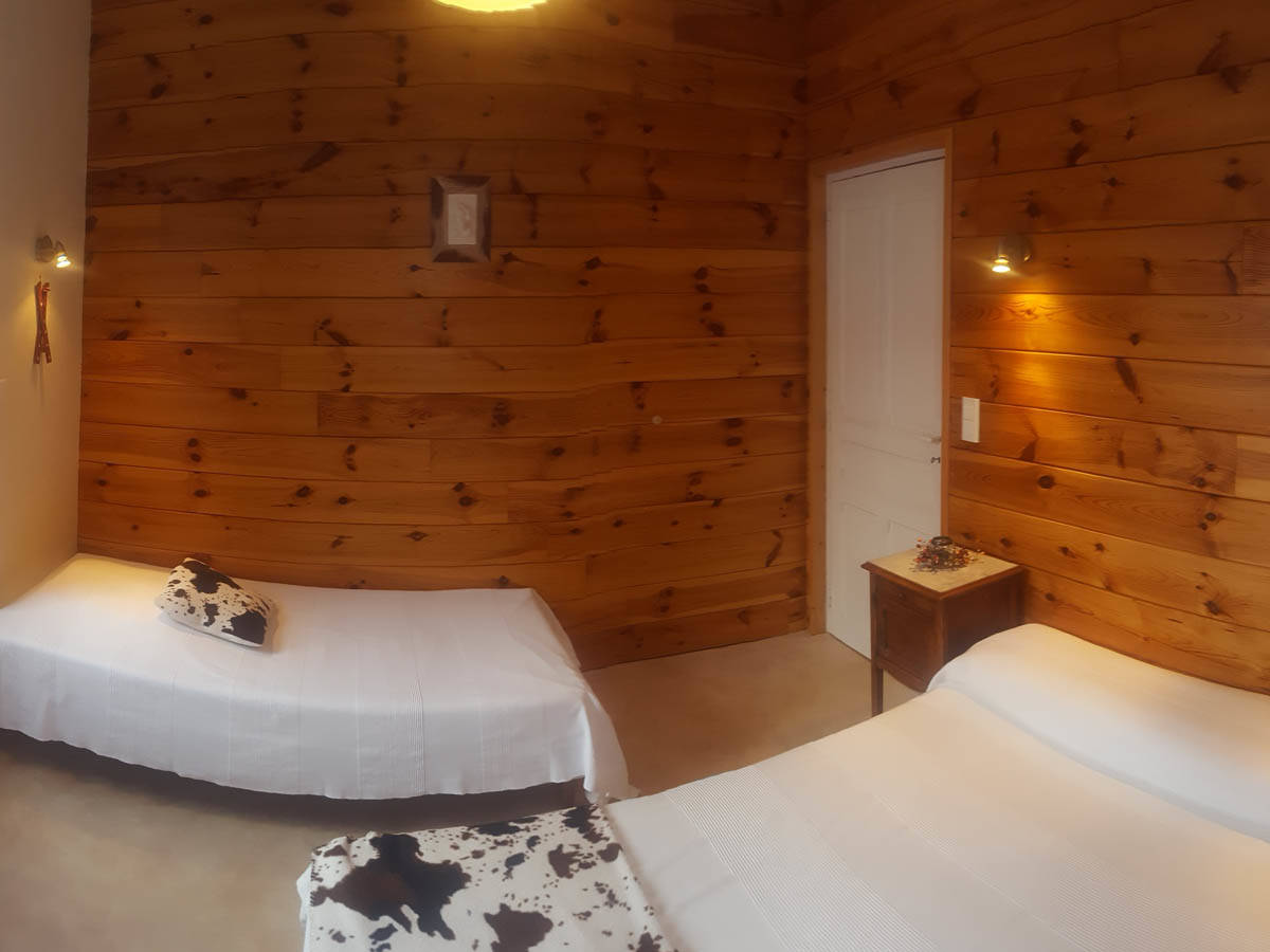 Il est composé d’une cuisine équipée avec canapé et TV, d’une salle de bain avec douche et WC, d’une chambre avec lit de 140 cm et lit de 90 cm.