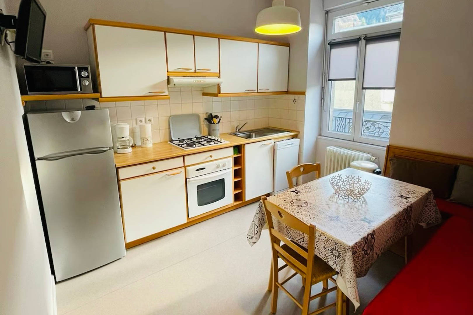 Cet appartement est composé d’une cuisine équipée avec banquette et TV, d’une salle de bain avec douche et WC, d’une chambre avec lit de 140 cm et un salon / chambre avec un rapido en 140 cm et une TV. Local chauffé pour matériel de ski. Laverie collective. Accès Wi-Fi gratuit.