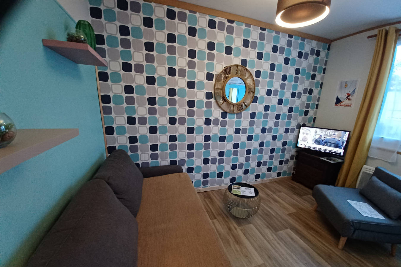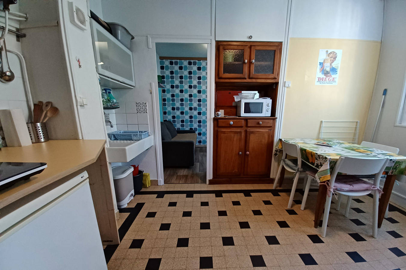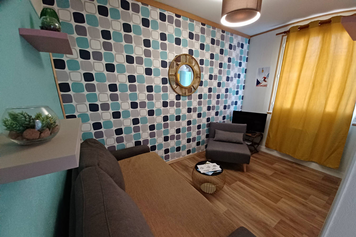 Appartement de 22m² au 1er étage, 3 couchages, chambre salon avec canapé rapido et fauteuil convertible, cuisine, lavabo et douche, toilettes.