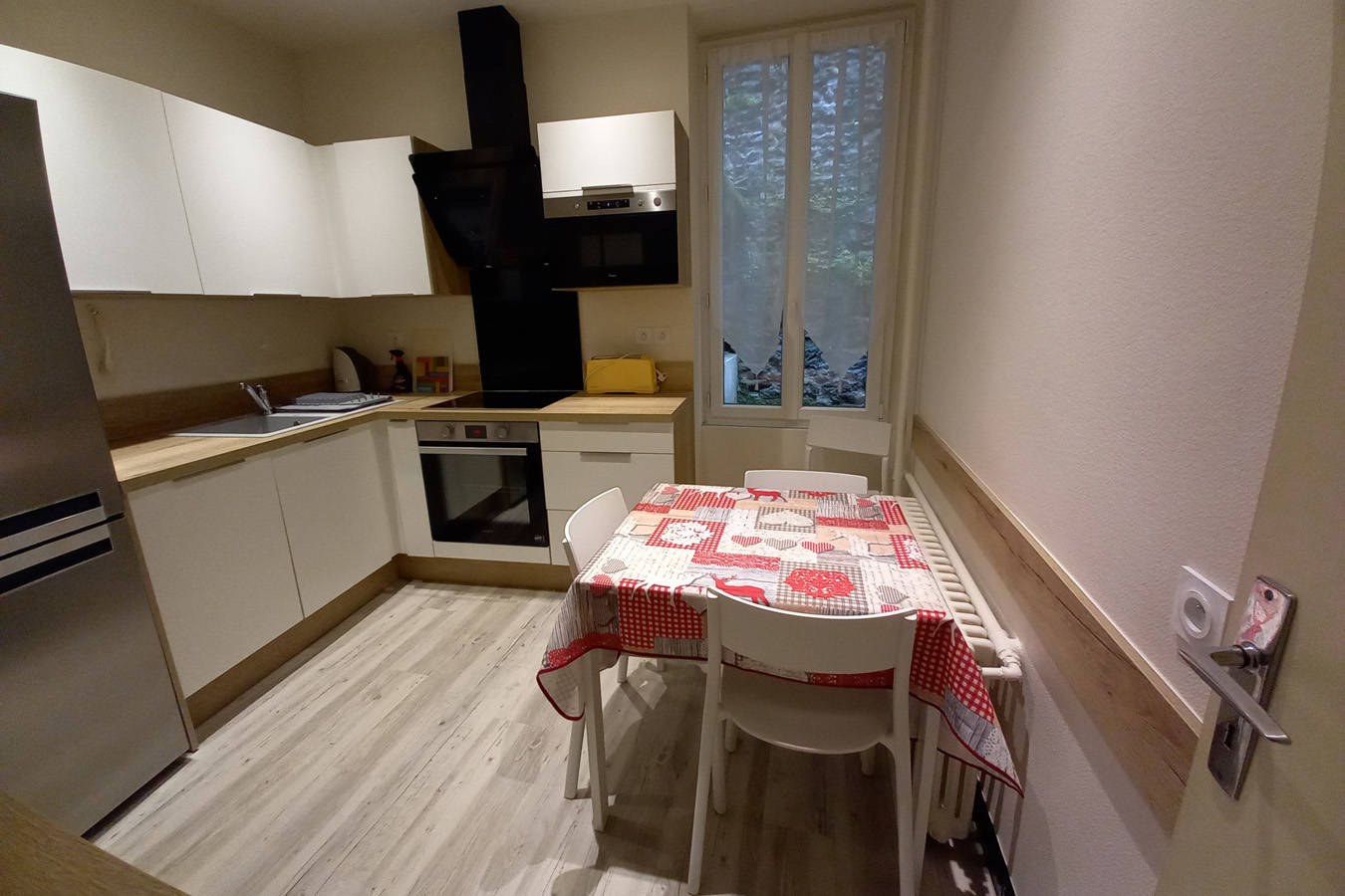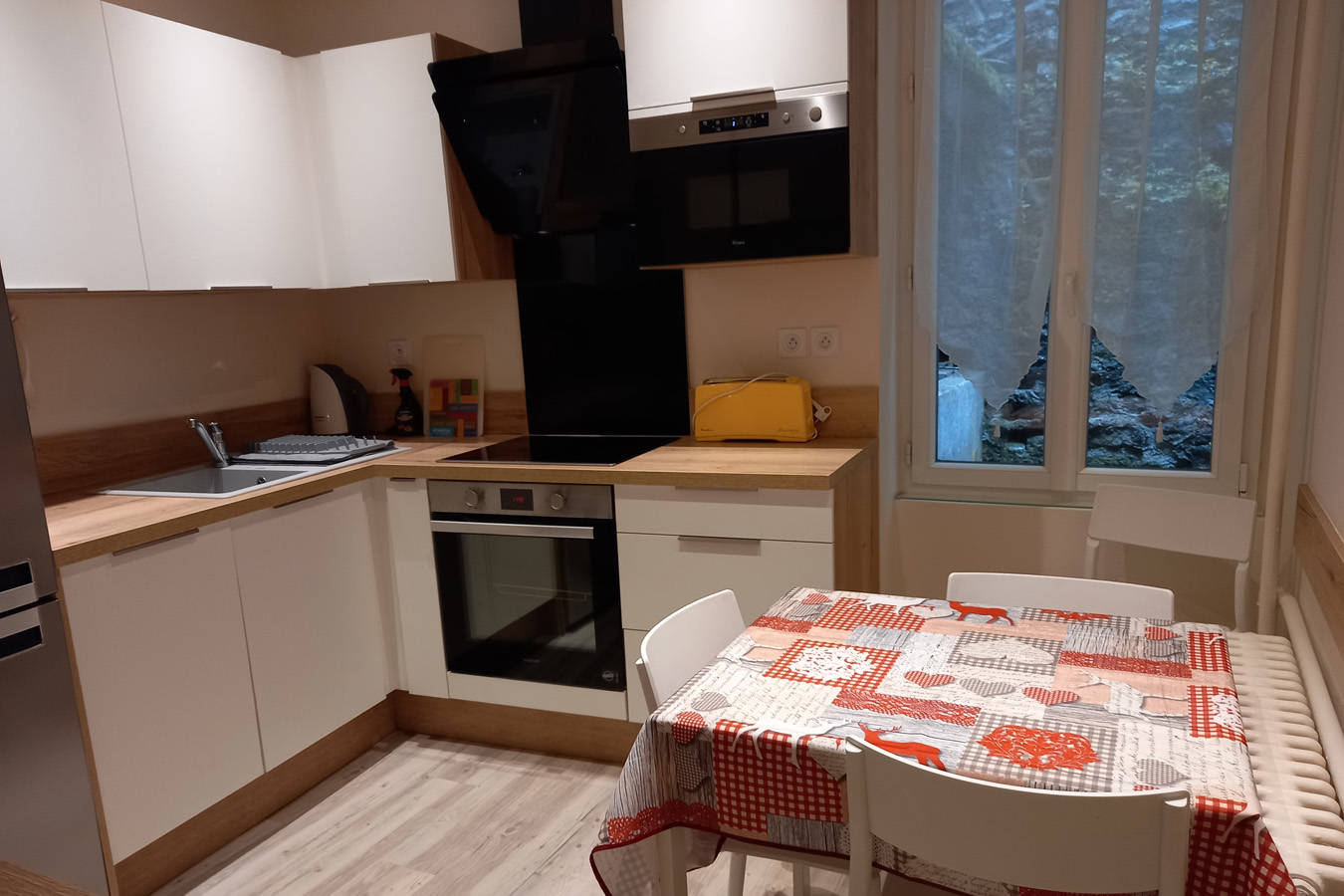 L’appartement est situé à proximité des commerces, du centre-ville et à 200 m de l’établissement thermal. Un arrêt des navettes gratuites pour accéder aux pistes de ski alpin et du domaine nordique : arrêt de la Poste (place Charles de Gaulle) à 250m pour les week-ends hors vacances et les vacances scolaires. Appartement d’une capacité d’accueil de 5 personnes avec 3 chambres séparées : 1 lit 140 cm + 1 lit 120 cm + 2 lits superposés. WC indépendant, VMC. TV. Accès wifi gratuit. Casier à skis individuel fermé.