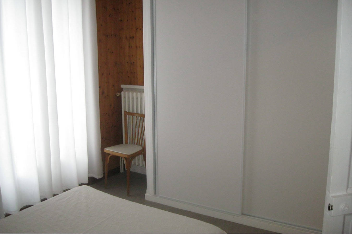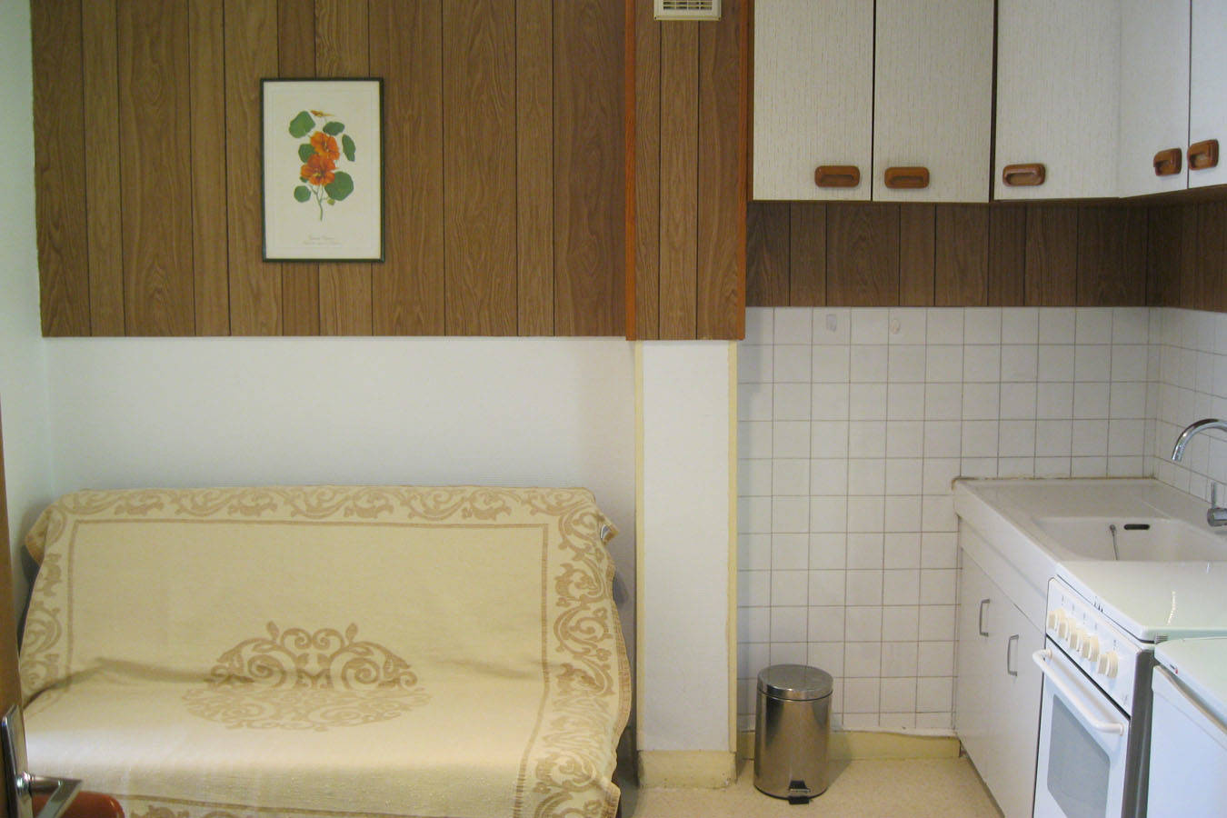 Appartement lumineux situé au 1er et dernier étage de la maison : cuisine équipée avec partie salon (BZ couchage 2 personnes), 1 chambre avec lit 140 avec porte-fenêtre ouverte sur balcon, jolie vue sur la montagne.
