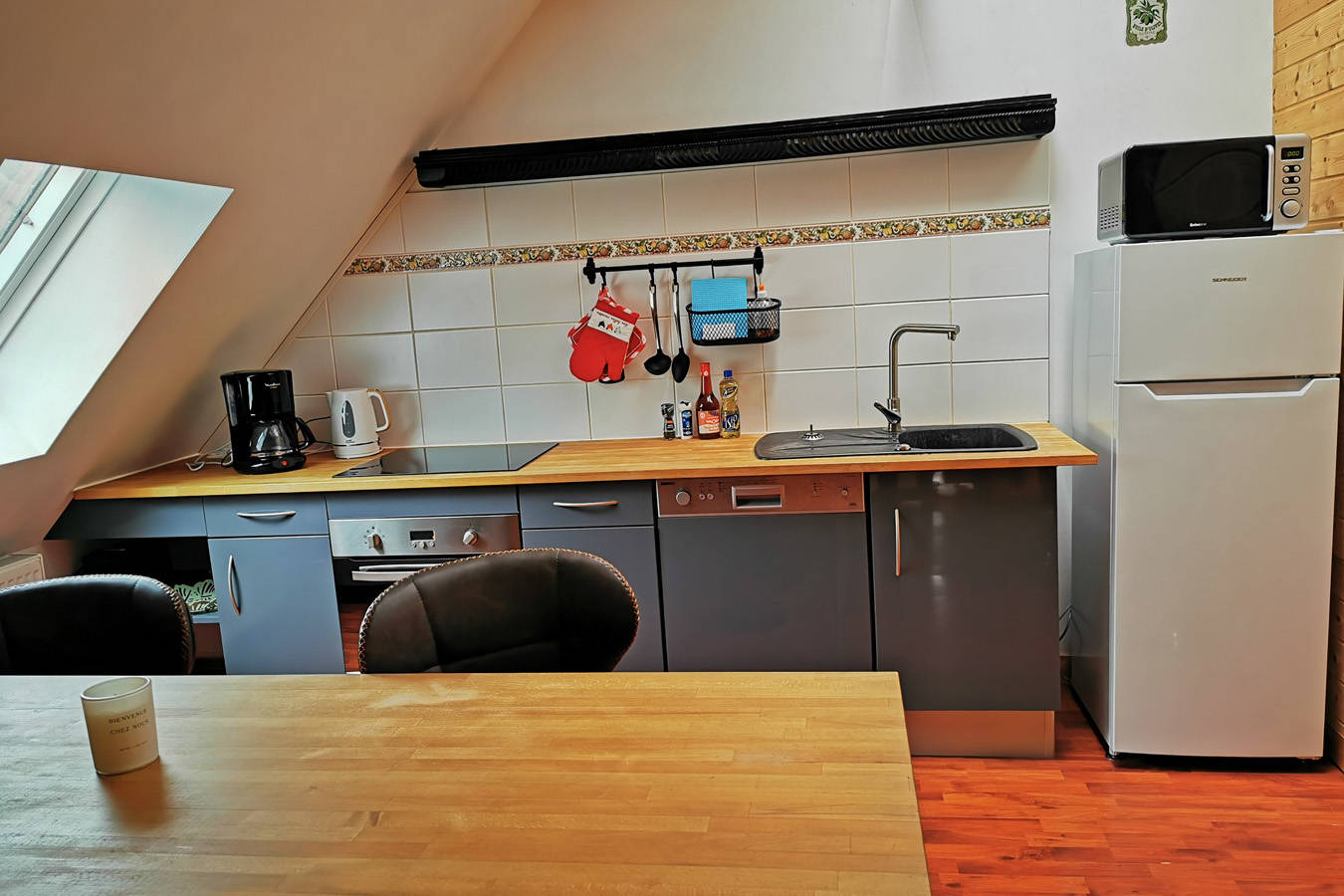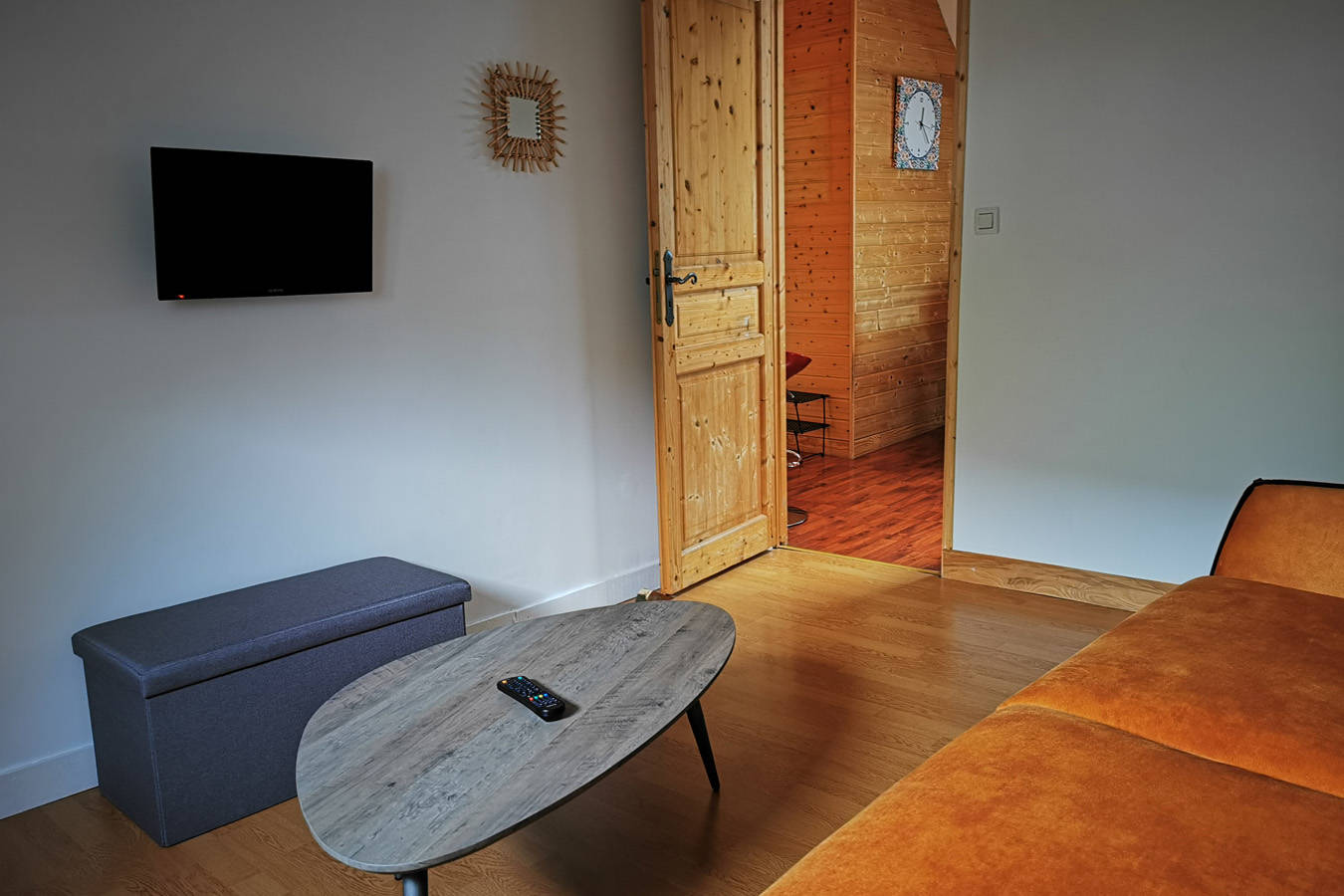 Dans maison d’hôtes, appartement de 46m² très agréable avec une belle pièce de vie : séjour cuisine tout aménagé donnant sur la partie salon (qui peut être fermée) avec canapé convertible haut de gamme doté d’un vrai matelas servant de(…)