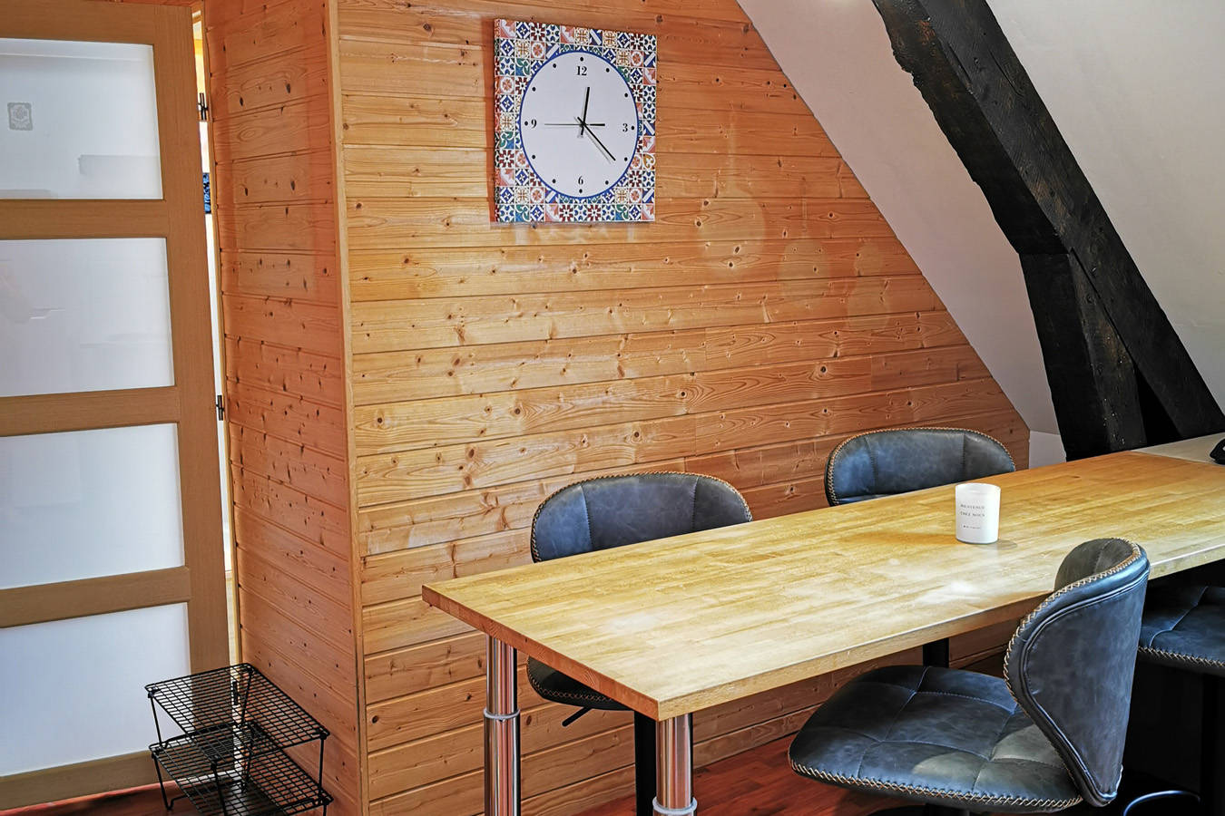 Pour les groupes (lits séparables (2x90x200)) ou grande famille, sachez que nous avons la solution pour héberger jusqu’à 15 pers en mettant à disposition une salle commune de 45 m² pour partager vos repas, les activités lecture et jeux de société… A l’inverse, nous pouvons tout à fait vous faire profiter de nos appartements en formule chambre d’hôtes.