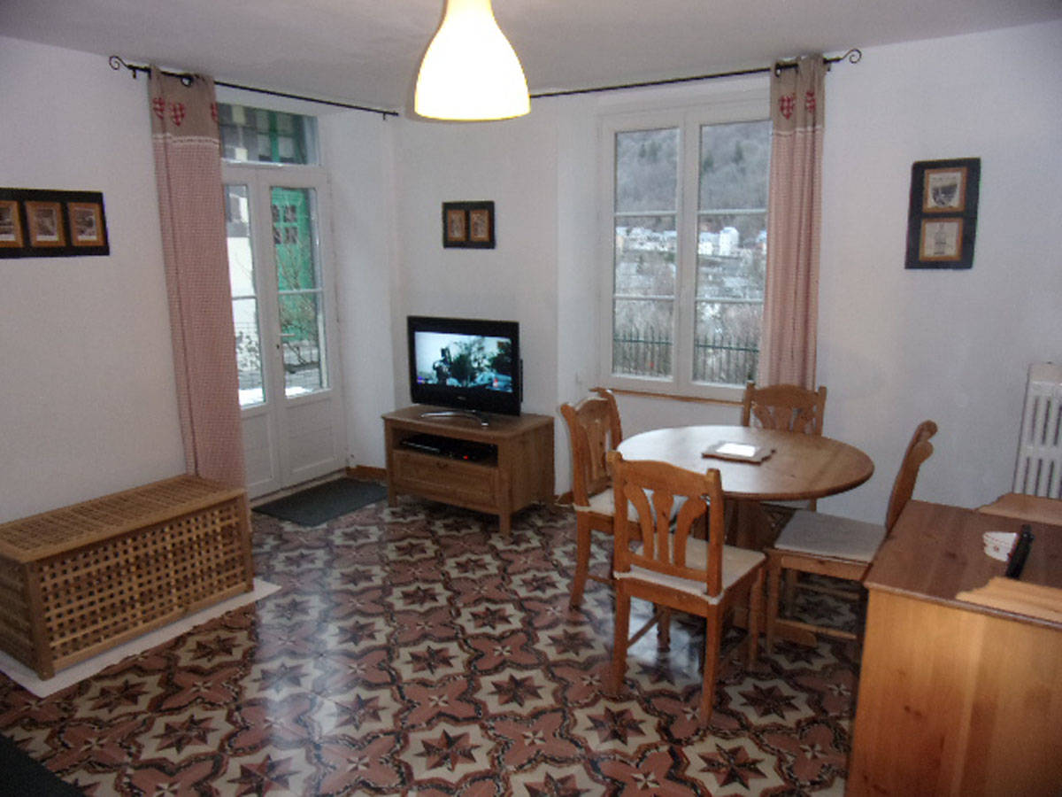 Vue dégagée et panoramique sur le village et les montagnes, à proximité immédiate du centre ville (5 min à pied), des thermes et à 150 mètres des navettes hiver gratuites (ski alpin et domaine nordique). Les navettes hiver circulent tous les jours en période de vacances scolaires et uniquement le week-end en dehors des vacances. Très calme en bordure du village et de la forêt. Accès direct aux chemins de randonnées et itinéraires VTT. Wifi, local à vélo et à skis.