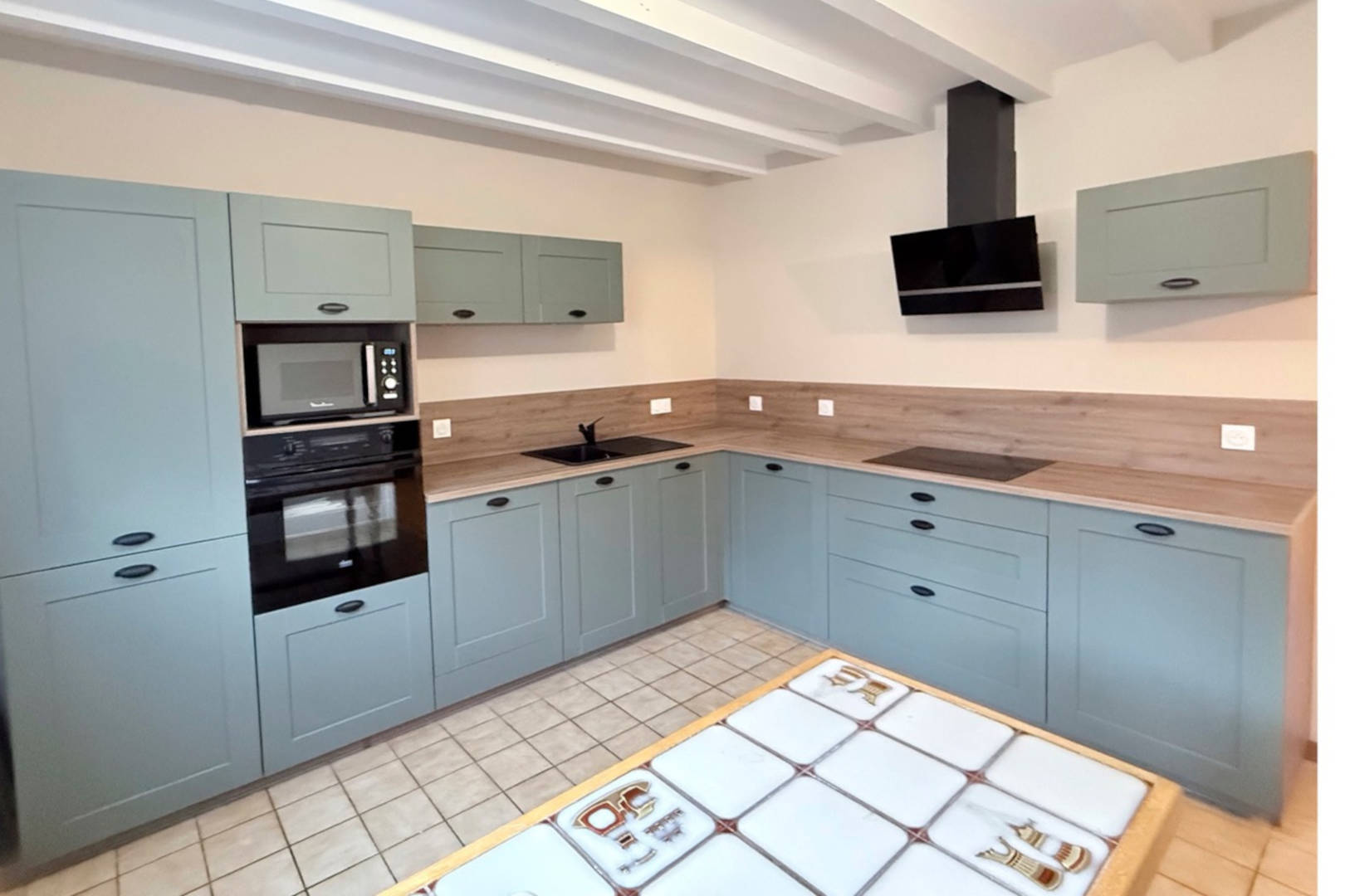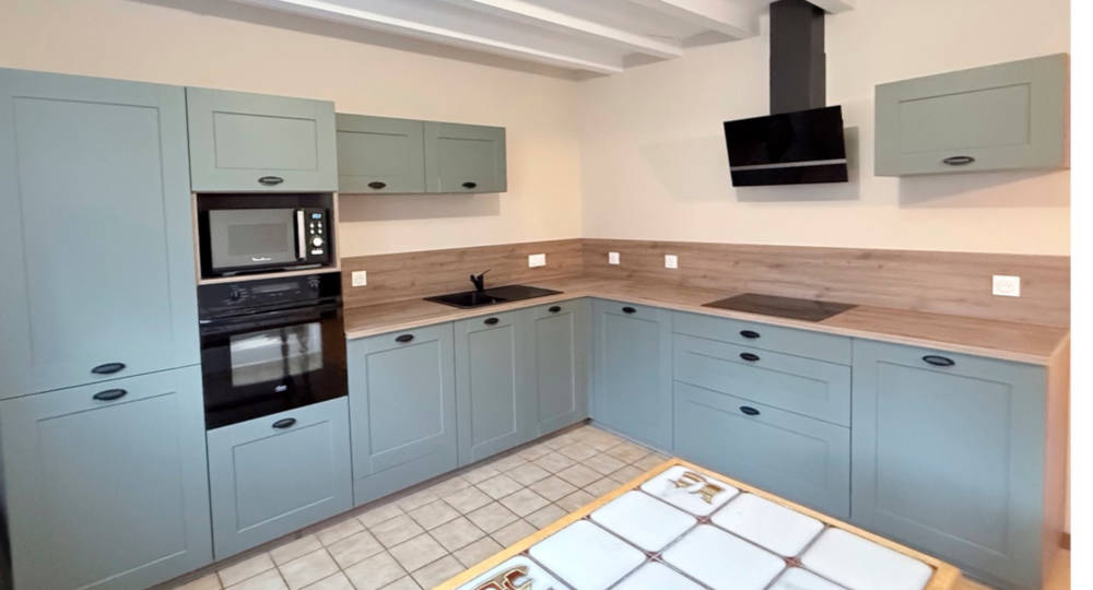 Sur 2 niveaux, le rez de chaussée accueille les pièces de vie, cuisine intégrée et entièrement équipée avec lave vaisselle, four, réfrigérateur et congélateur, micro onde …