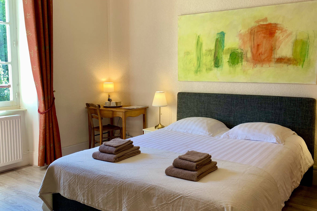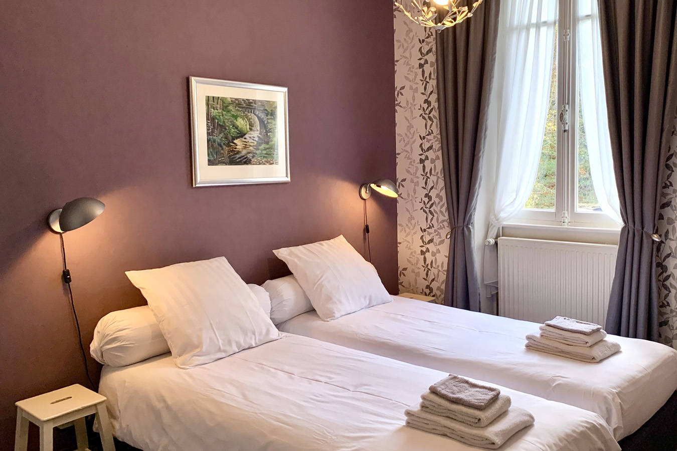 Vous séjournerez dans une des chambres avec un lit double ou 2 lits simples. Les chambres sont toutes équipées d’une salle d’eau privée avec douche, lavabo et toilettes.