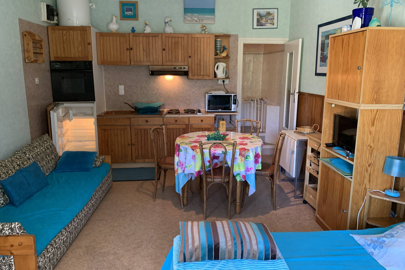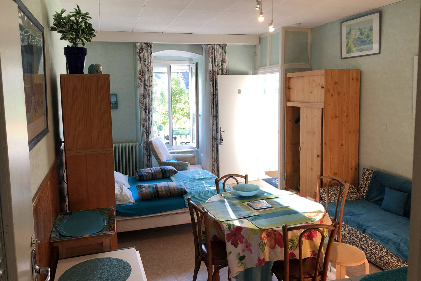 Studio, classé 2*, exceptionnellement situé avec accès direct à la terrasse et au jardin partagés, orienté sud, bien aménagé : possible pour déjeuner et détente. Vue panoramique exceptionnelle, décoration intérieure et propreté soignées. A la fois en plein centre-ville et retiré au calme.
