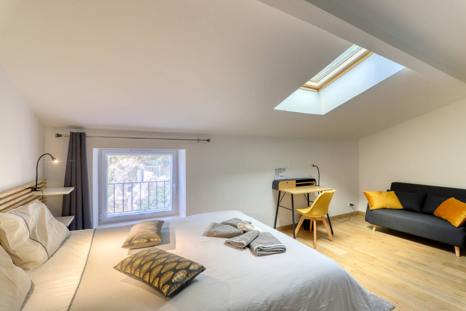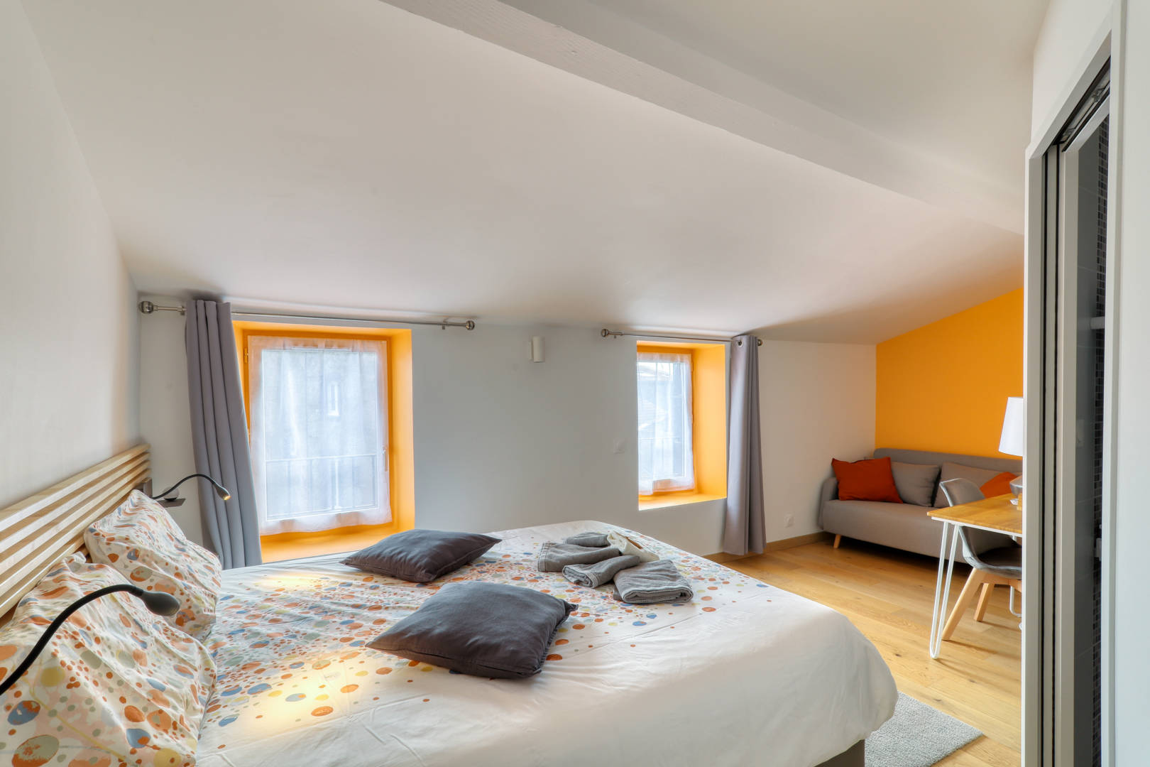 Le canapé convertible de chaque chambre peut accueillir 2 enfants jusqu’à 10-12 ans ou 1 adulte, car il ne mesure que 120cm de large.