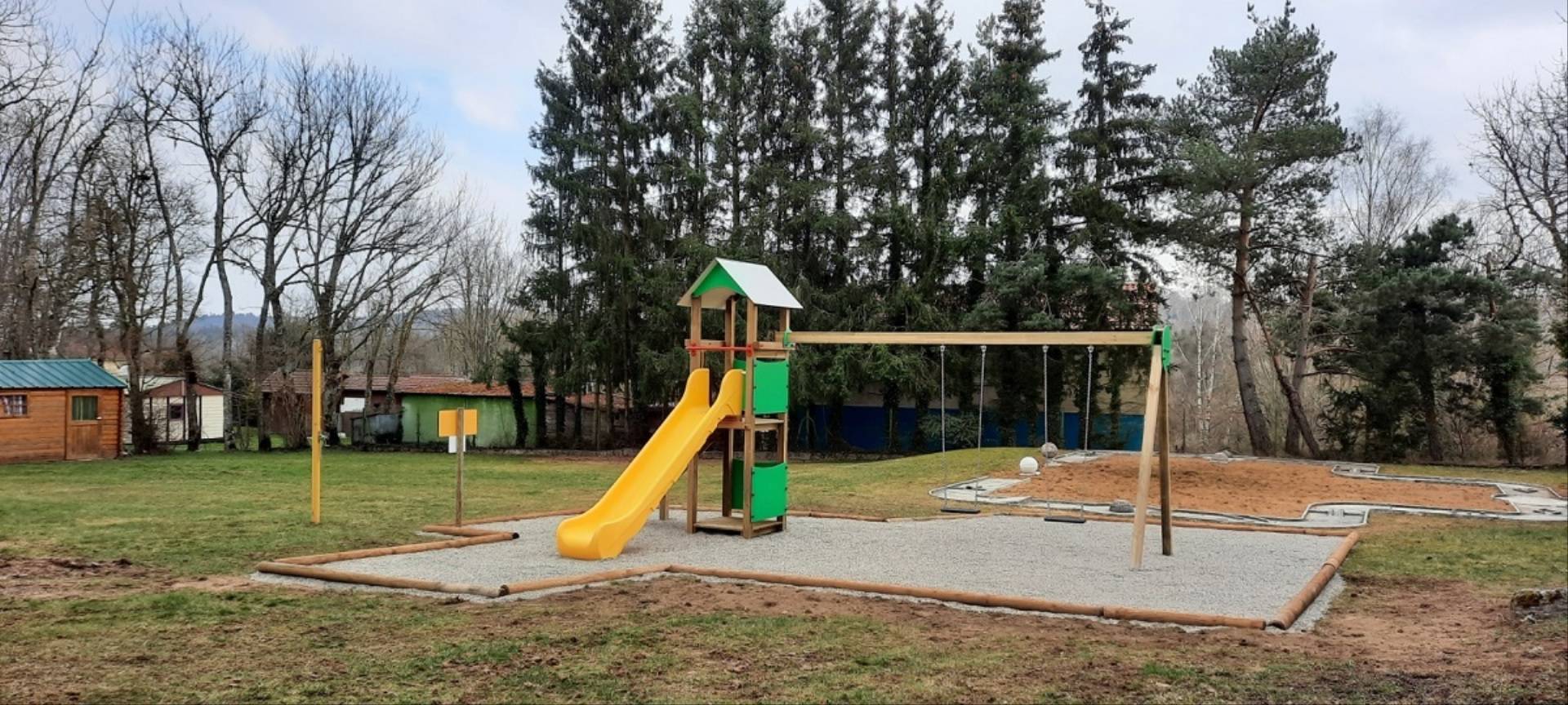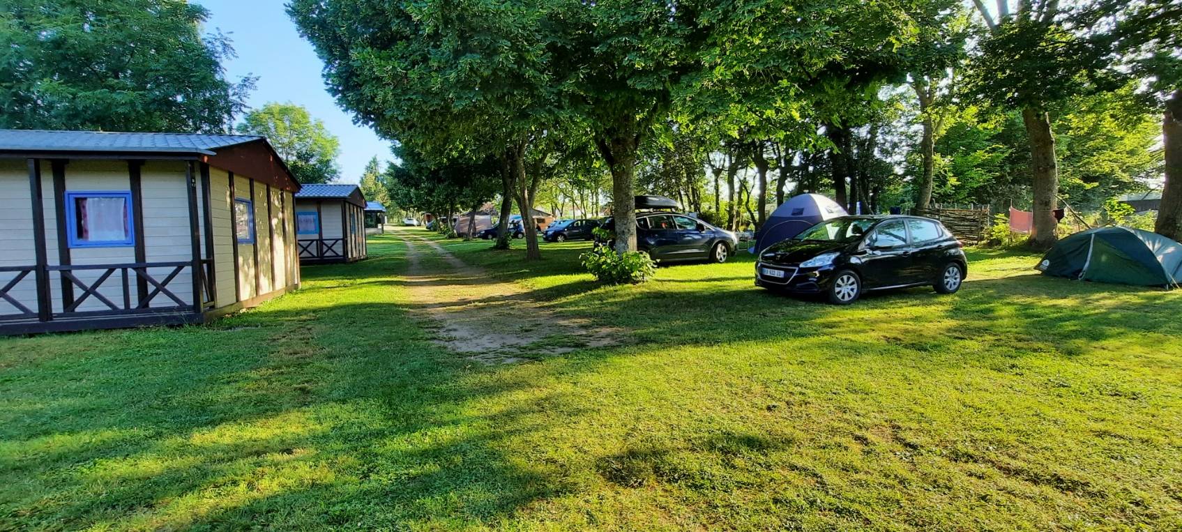 Camping caravaning, emplacements ombragés, borne camping-car, sanitaires accès handicapés, douche chaude, branchement électrique, location chalets bois atypiques (6), bungalows (4) pour 4 à 6 personnes et mobile home avec clim réversible (2).