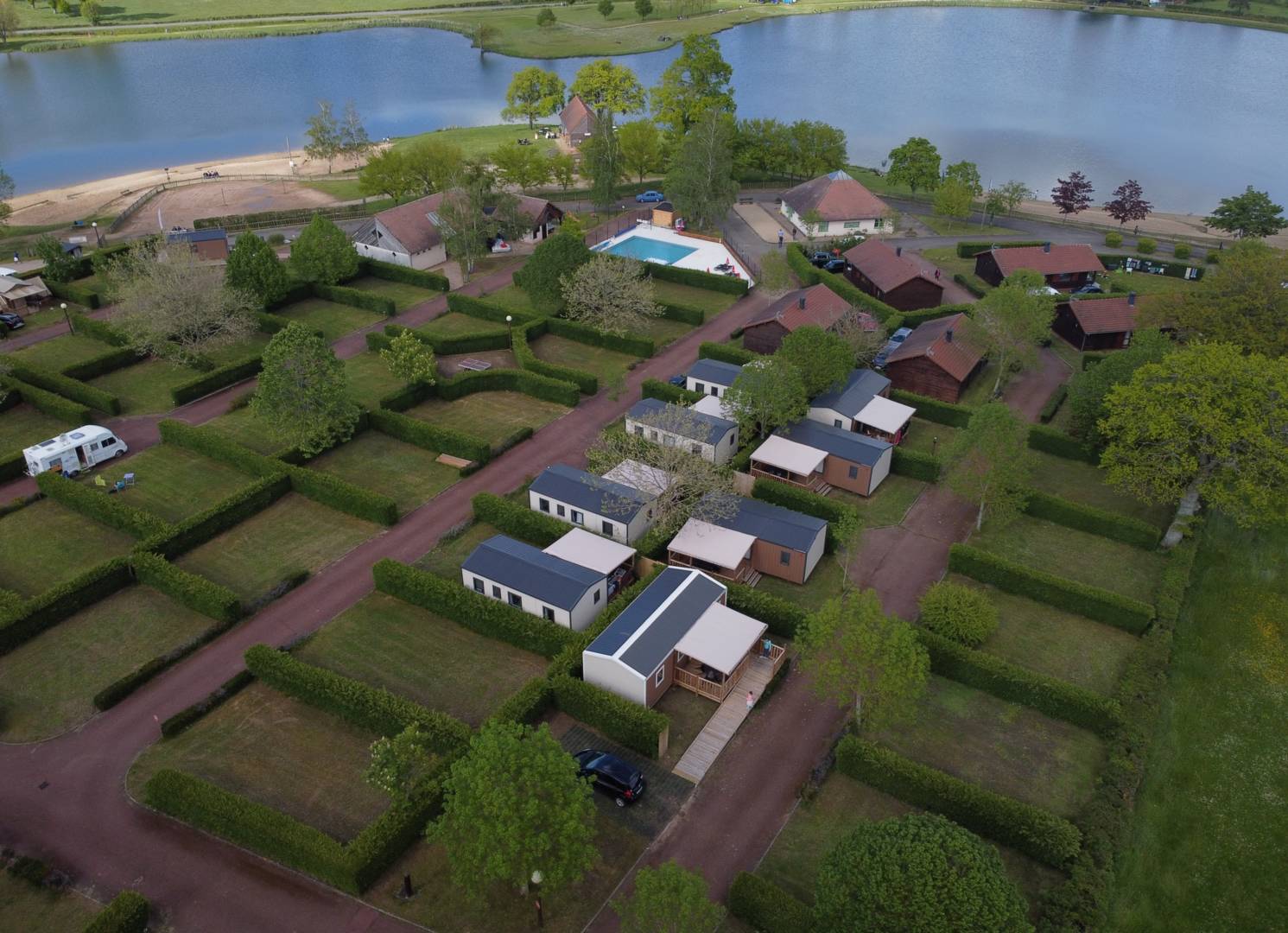Venez découvrir ou redécouvrir un havre de paix, dans un écrin de verdure au cœur de l’Auvergne. À deux pas des gorges de la Sioule, entre Puy-de-Dôme et Allier, vous trouverez un camping familial de près de 2 ha, avec 50 emplacements pour tentes, caravanes et camping-cars et 6 grands chalets bois tout confort. A votre disposition également, une piscine réservée à la clientèle et 8 mobile-homes d’une capacité de 4 à 7 personnes dont un adapté aux personnes à mobilité réduite (accès, aménagement intérieur…). Vous trouverez également trois hébergements de type lodges, deux d’une capacité de 4 à 5 personnes et un collectif pouvant accueillir jusqu’à 14 couchages: idéal pour vos cousinades, mariages ou bien encore une colonie de vacances ou centre de loisirs! Enfin, un boulodrome et une aire de service pour les camping-cars vous attendent! N’hésitez pas à vous détendre au bord du plan d’eau de près de 20 ha, bordé de deux grandes plages aménagées: snack, terrains de tennis, volley-ball, promenades à pied ou en vélo autour du lac, pêche (carpes, truites…), baignade surveillée, Vélorail à proximité… repos et dépaysement garantis! Une épicerie et tabac/presse au coeur du village, et tout un choix de randonnées et balades à proximité. Bienvenue dans notre camping!