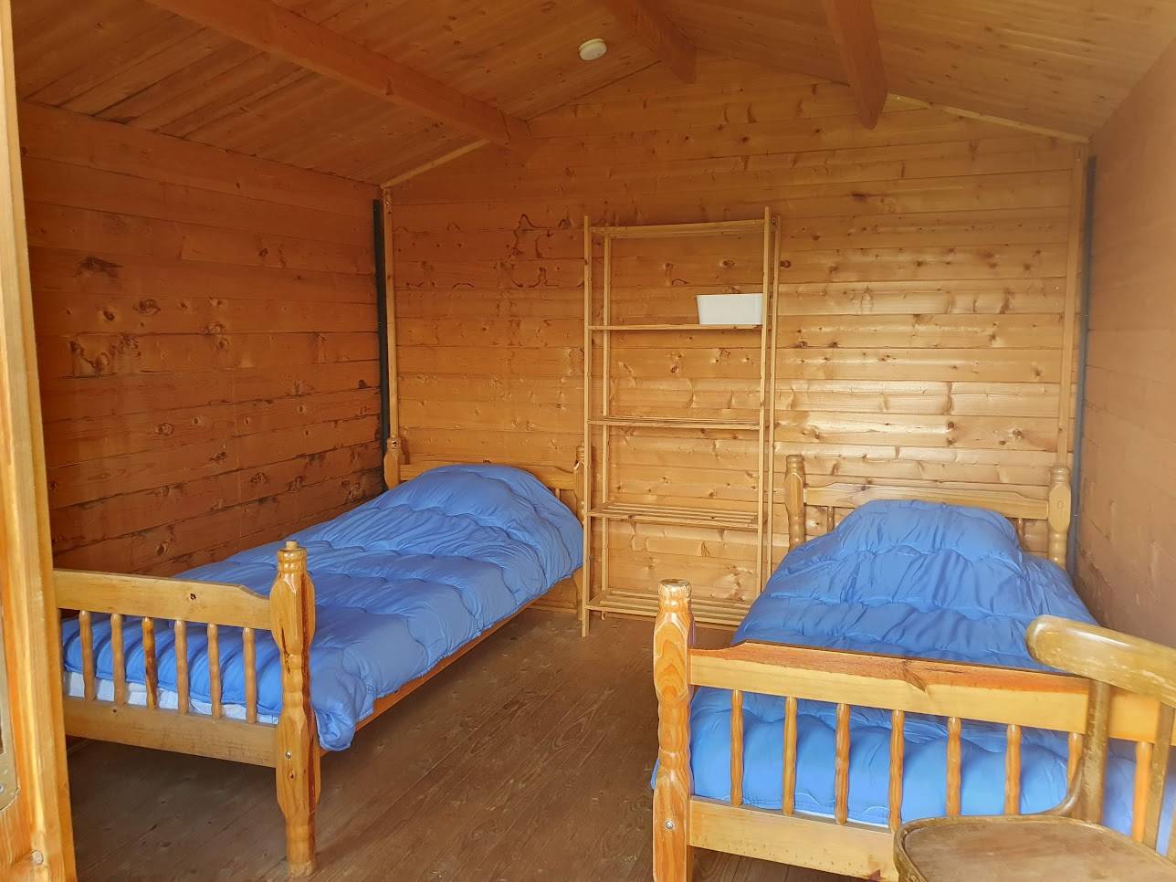 4 tentes militaires pour des groupes, et 18 chalets de 2 à 3 personnes.