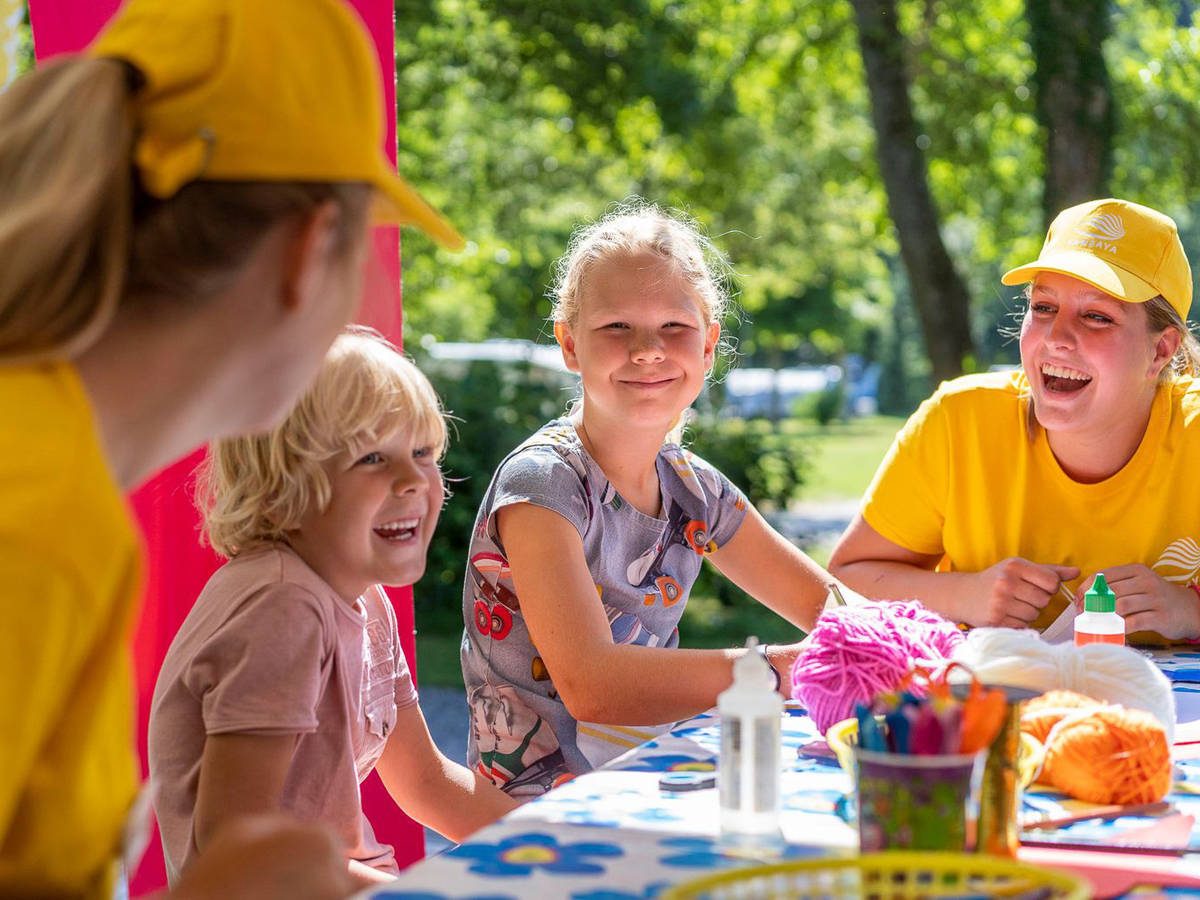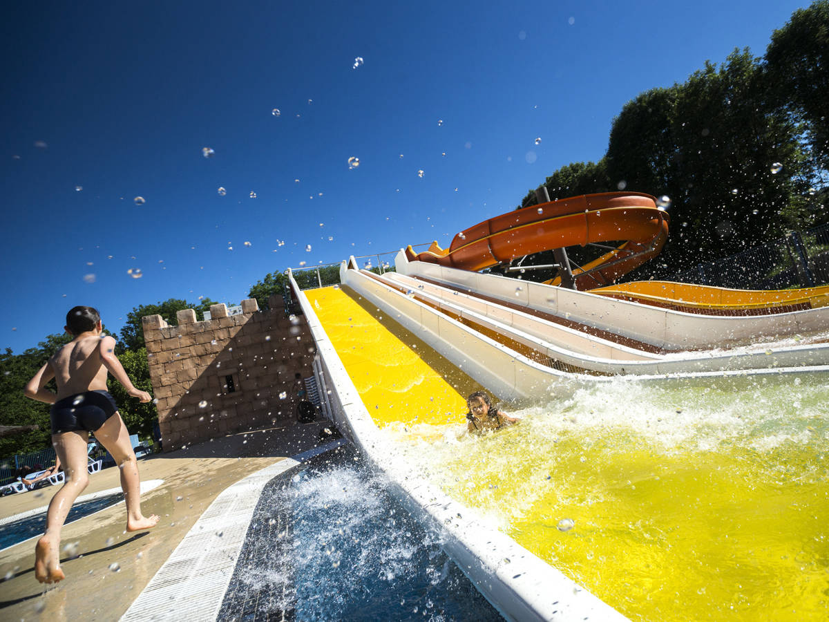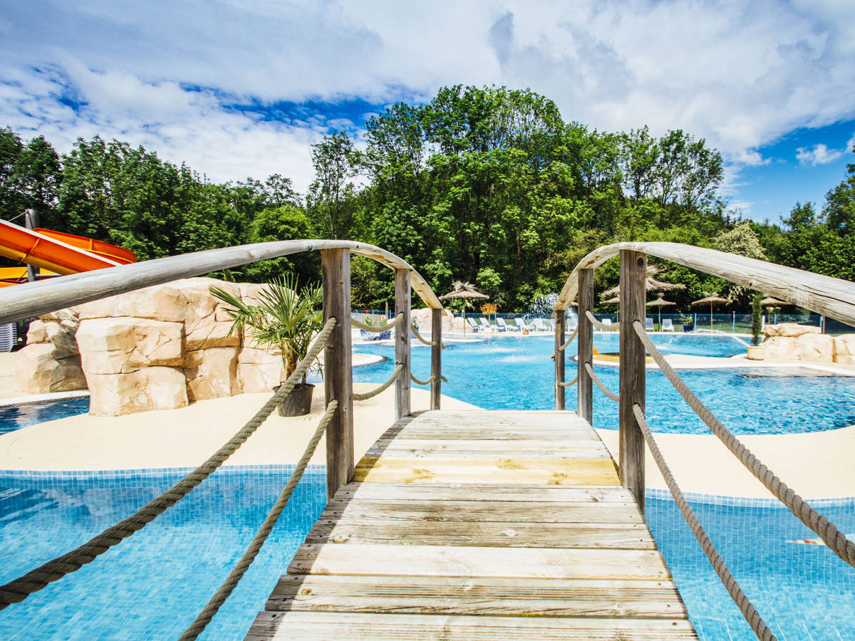 Camping 5* Lac privé avec plage de sable et parc aquatique couvert et extérieur en pleine nature.