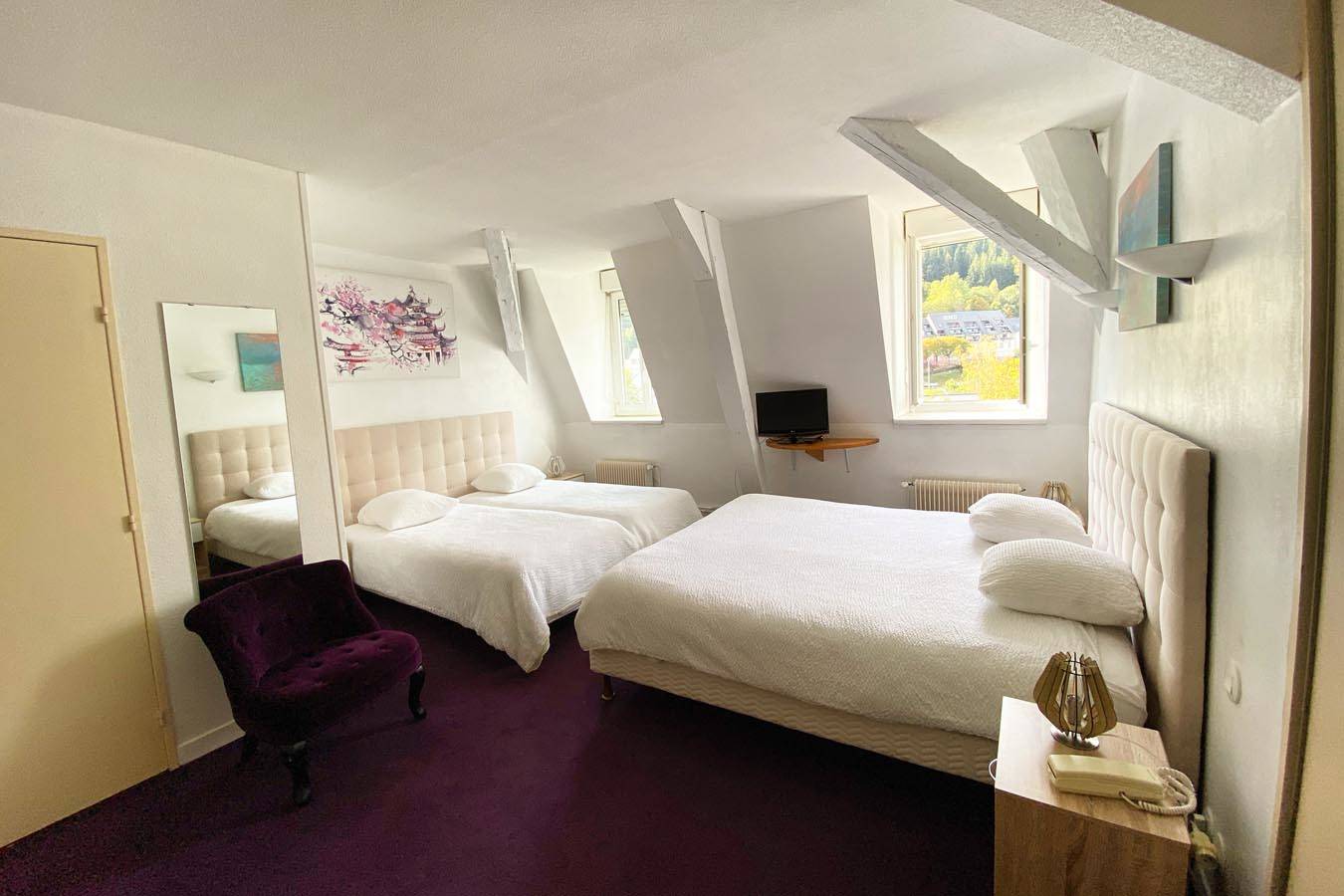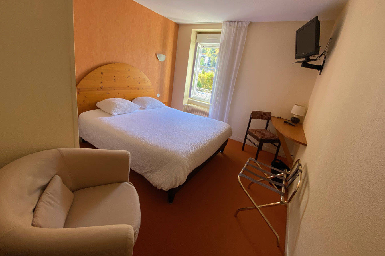Le bâtiment typique de l’architecture thermale de la fin XIXème dispose d’un emplacement privilégié à la fois proche des Thermes et du parc thermal. Ses trois étoiles sont les garants de notre attachement à l’accueil et à la gastronomie. Les 27 chambres donnant sur une rue piétonne ont été entièrement rénovées dans un style à la fois chaleureux, zen et élégant. Les 30 chambres standards face à la brasserie « Le Shelby » ont une vue montagne. 3 chambres sont adaptées aux personnes à mobilité réduite.