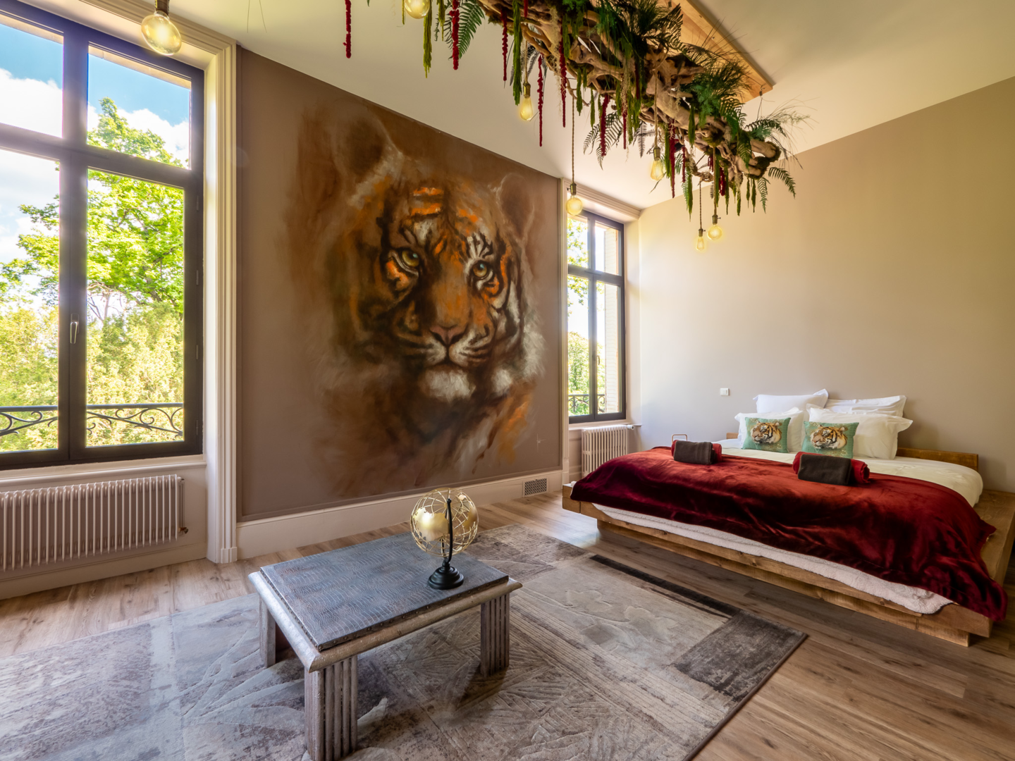 Imprégnée de couleurs vibrantes et chaleureuses, cette chambre prestige puise son inspiration dans la force du tigre. Majestueuse et subtile, cette chambre vous transporte dans l’univers du plus grand des félins.