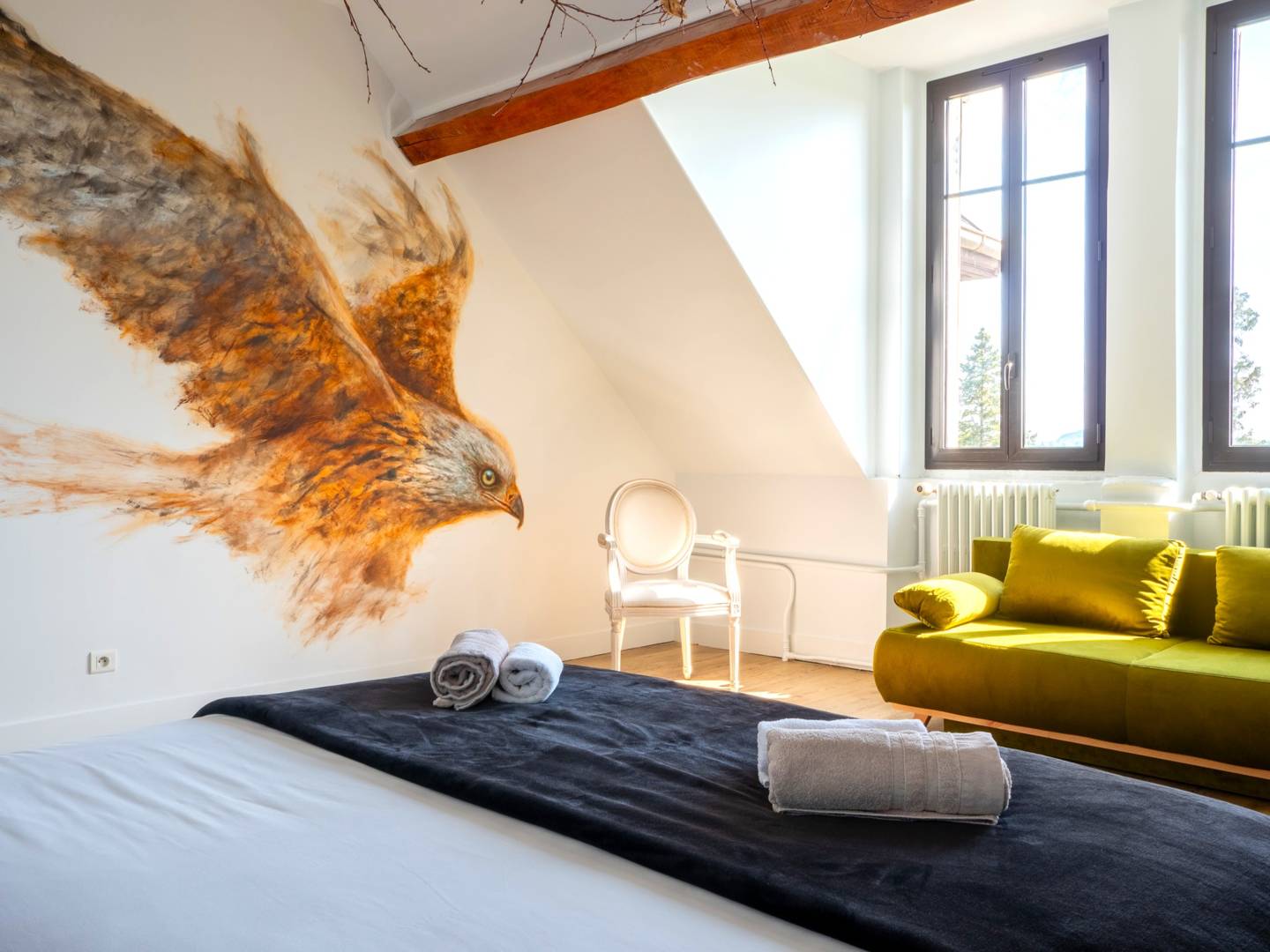 À la croisée de l’hôtellerie, de l’événementiel et du game hotel, notre établissement s’engage en faveur de la préservation de la biodiversité. Votre séjour parmi nous sera exceptionnel. Nos 9 chambres, inspirées des merveilles sauvages de la nature, vous transporteront aux quatre coins du monde ! Sublimée par les œuvres de l’artiste Sandrot et les créations de Mia Terra, les chambres proposées deviendront votre cocon douillet et paisible pendant toute la durée de votre séjour.