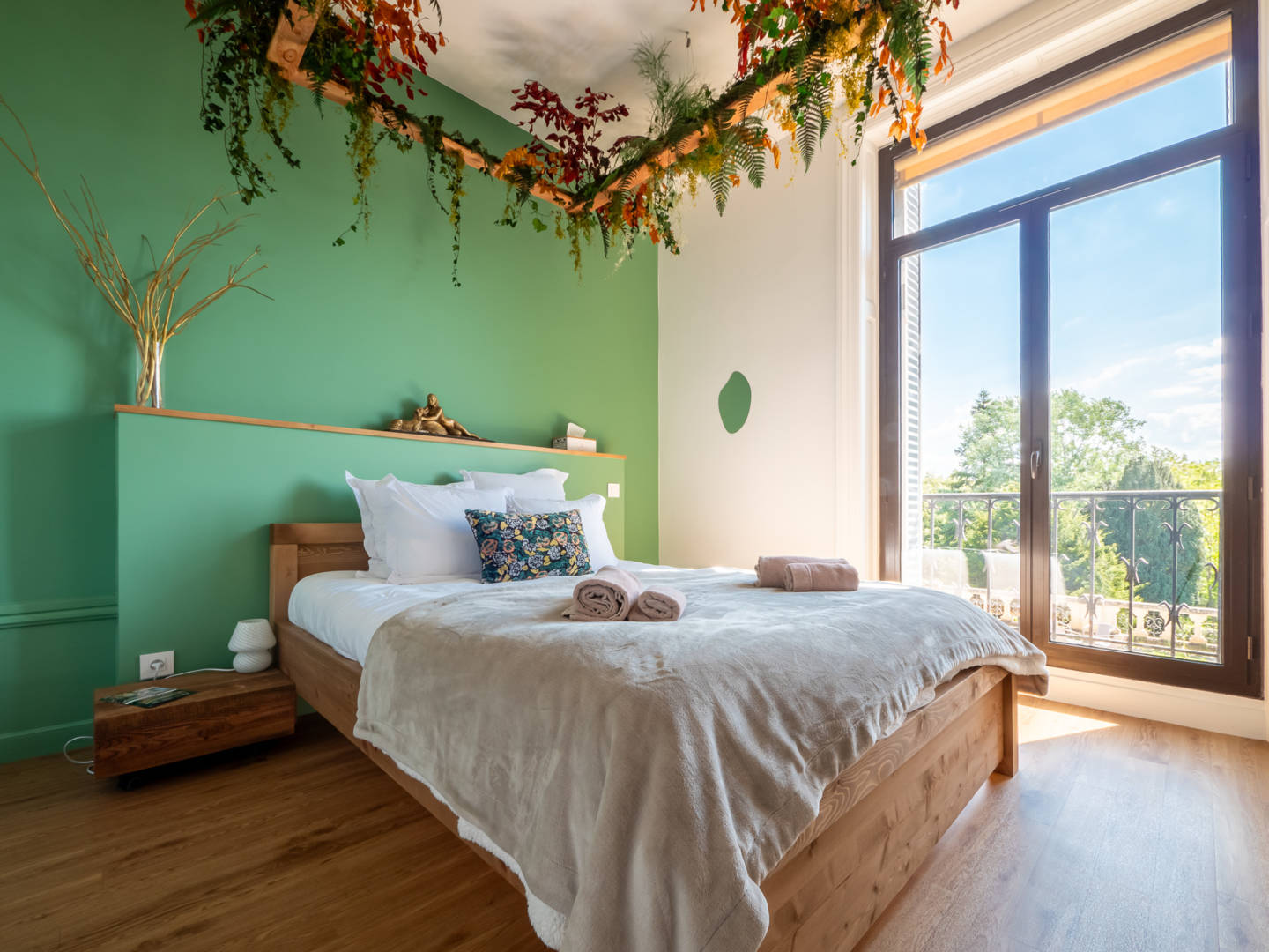 Envie de fuir dans un monde végétal ? Plongez dans cette chambre confort où les couleurs verdoyantes et les influences asiatiques vous transportent tout droit dans l’univers des pandas roux.