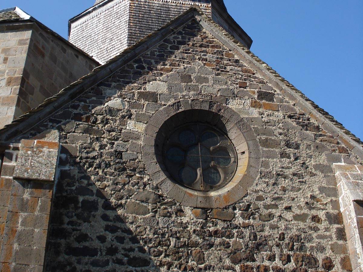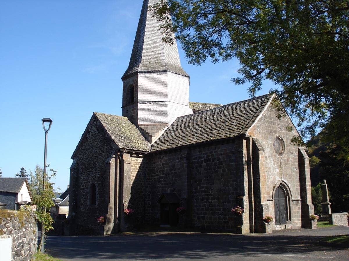 Le clocher de Compains, reconstruit en 1822, possède une flèche couverte de bardeaux de châtaignier, courant en région de montagne.