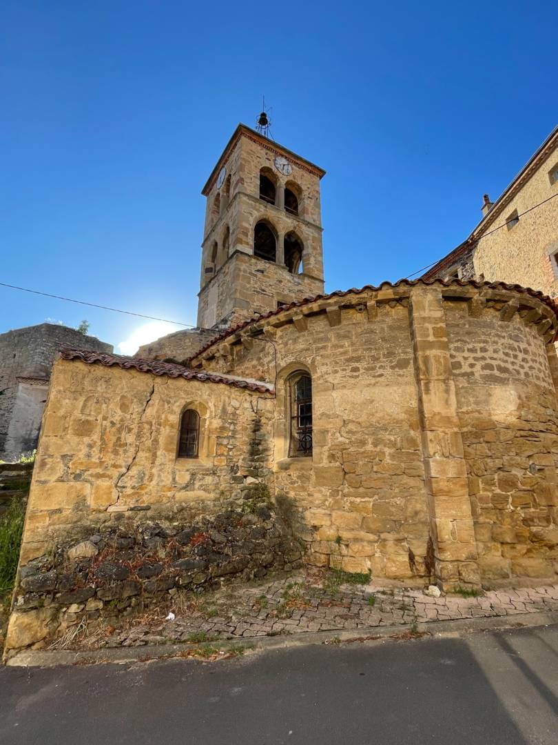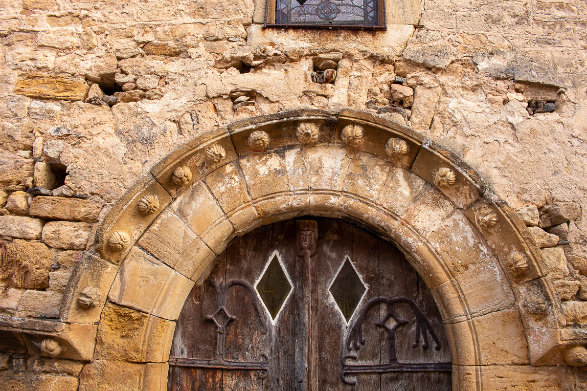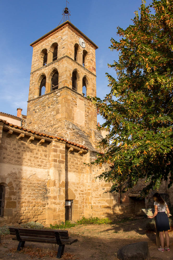 d’Orsonnette, précédemment évoquées. D’une élévation initiale plus modeste, le clocher a été surélevé et couronné au 19ᵉ siècle d’un campanile en fer forgé. Les vantaux du portail sont garnis de pentures médiévales, aux terminaisons écorées de têtes humaines et animales.