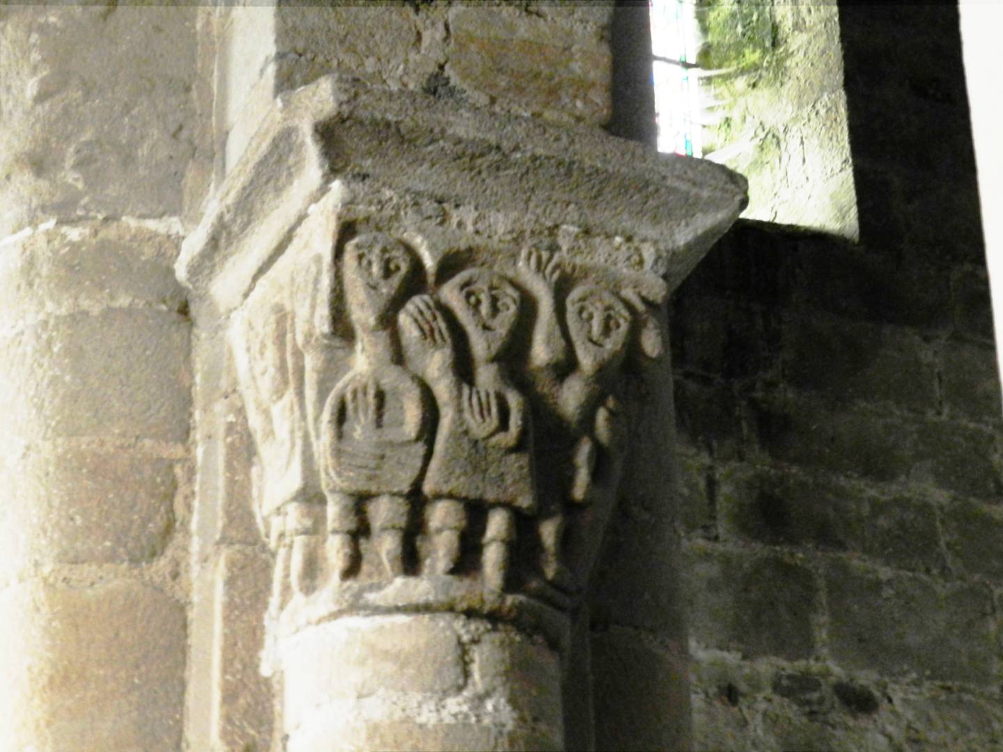 Les chapiteaux représentent l’assimilation de cultes antérieurs par le christianisme : des divinités païennes côtoient des hommes d’église.