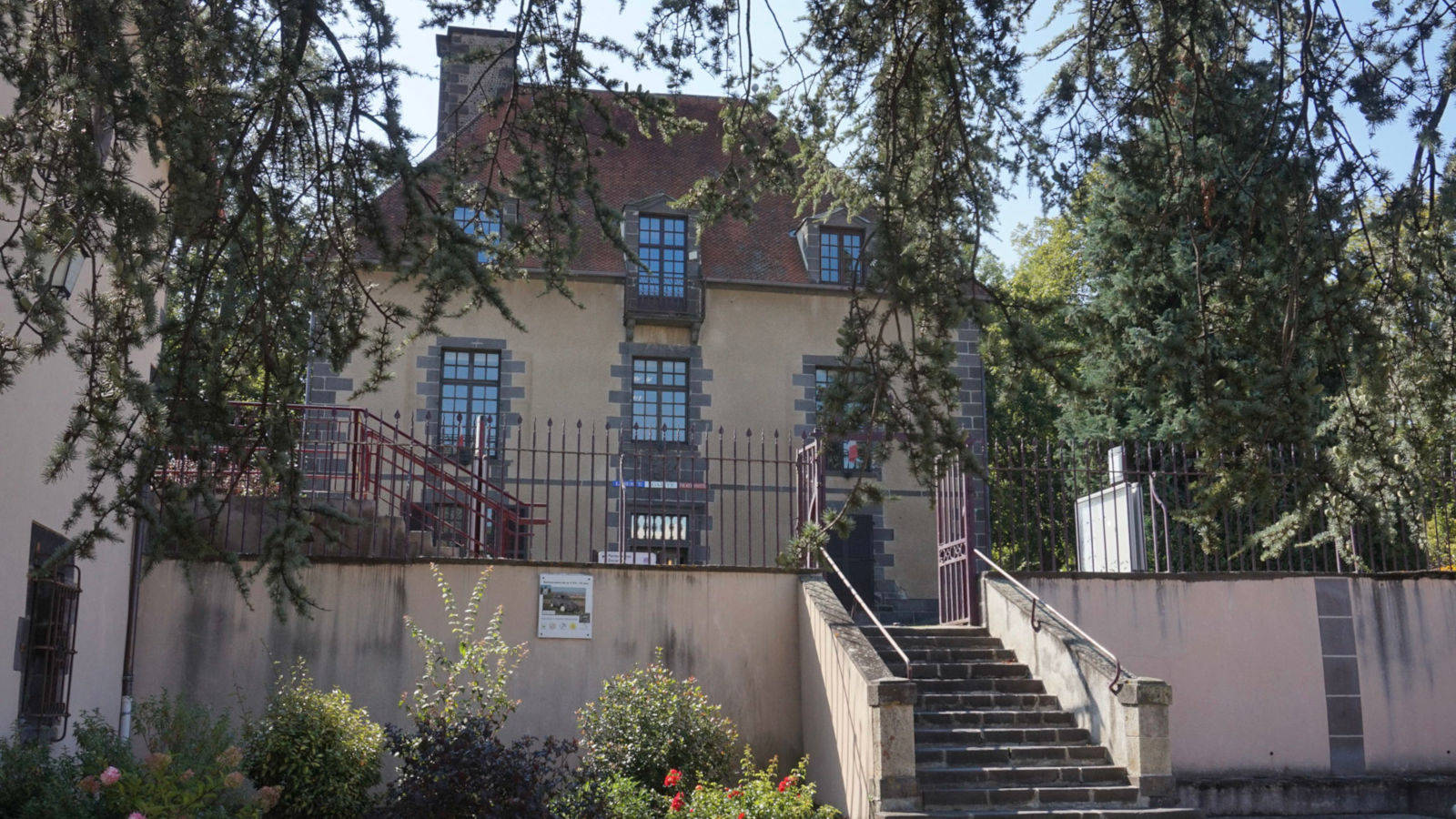 Cette maison de maître est construite en 1672 par Charles Poisson, trésorier de France. Le blason au-dessus de la porte, malheureusement martelé, porte les armes des Poissons. De dimensions modestes, la maison s’apparente aux modèles des maisons de plaisance associées à un parc. Le toit à pentes raides, tuiles plates et grandes cheminées est plutôt inhabituel dans la région et dénote une influence venue du nord. À l’intérieur, un bel escalier en pierre de Volvic dessert les différents niveaux. La salle des mariages, ancienne cuisine, conserve une grande cheminée en pierre de Volvic avec son four à pain. La salle à manger, aujourd’hui secrétariat, est ornée d’un décor rocaille du 18e siècle : cheminée en marbre surmontée d’un trumeau représentant une nature morte.