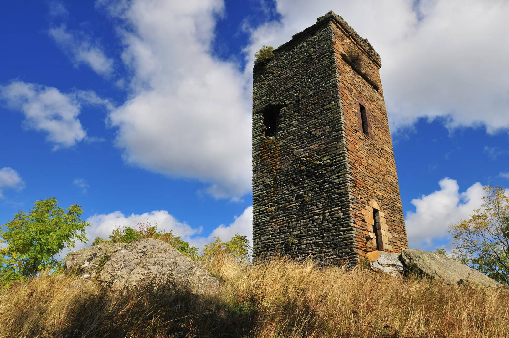 Construite dans la seconde moitié du 12ème siècle et achevée au 13ème, elle jouait un rôle défensif dans ce territoire. Dressée sur un piton rocheux, elle était défendue sur ses autres accès par un fossé et un talus. Elle se caractérise par un plan carré et un système de voûtes(…)
