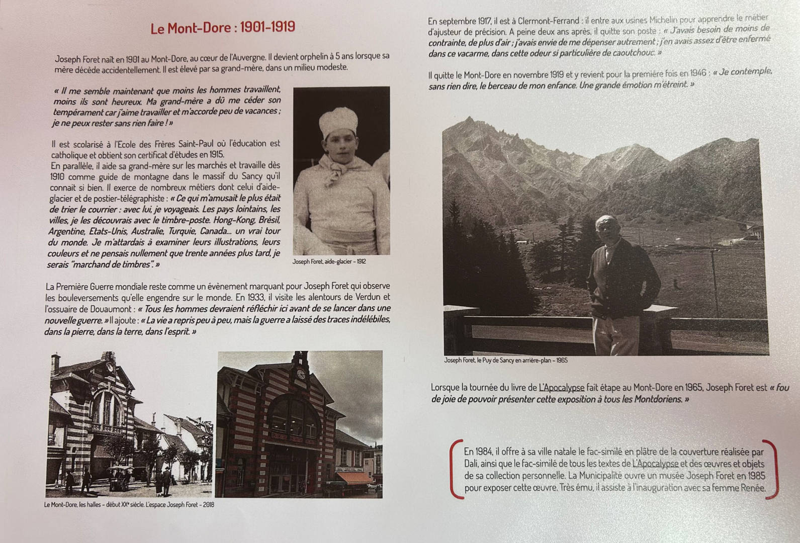 En 1984, Joseph Foret offre au Mont-Dore le fac-similé de la couverture du livre qui a été réalisé par Dali, ainsi que tous le textes et objets de sa collection personnelle.