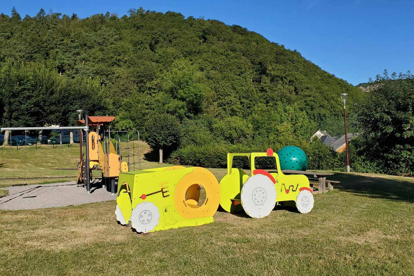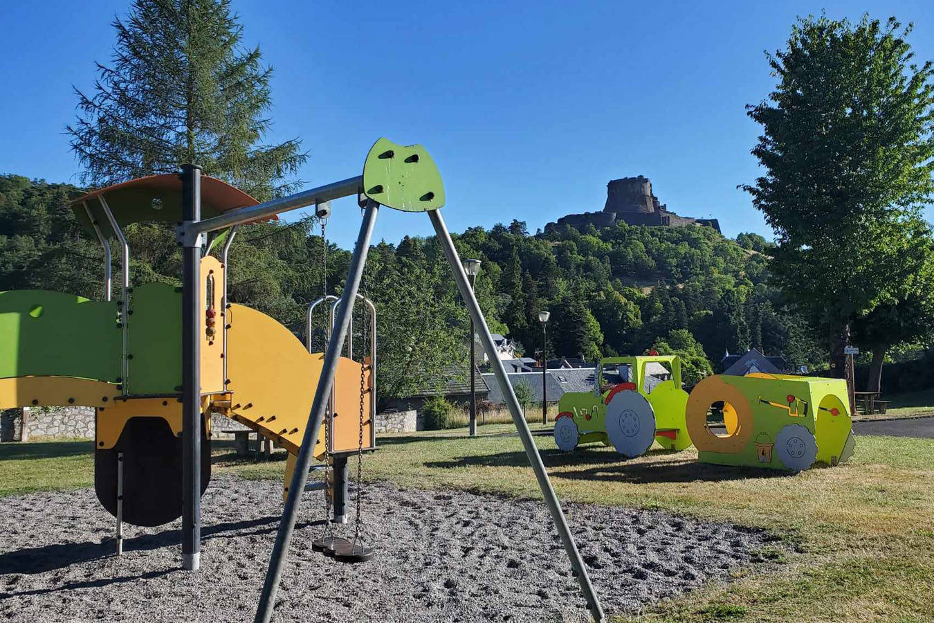 A noter également : sur la Place de l’église, petite aire de jeux clotûrée et sécurisée avec toboggan et jeux à ressort. Parking et bancs à proximité. Accessible en poussette.