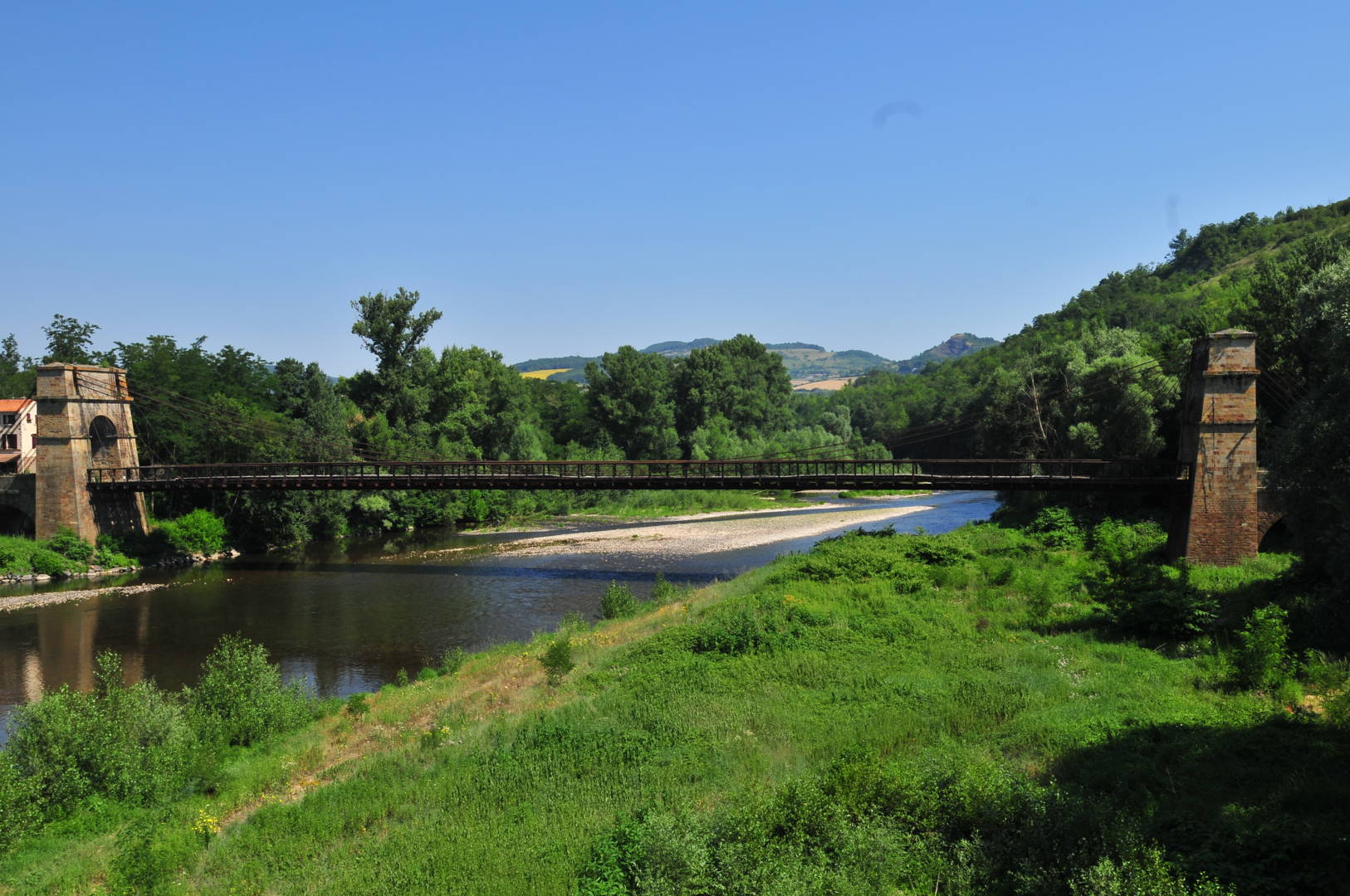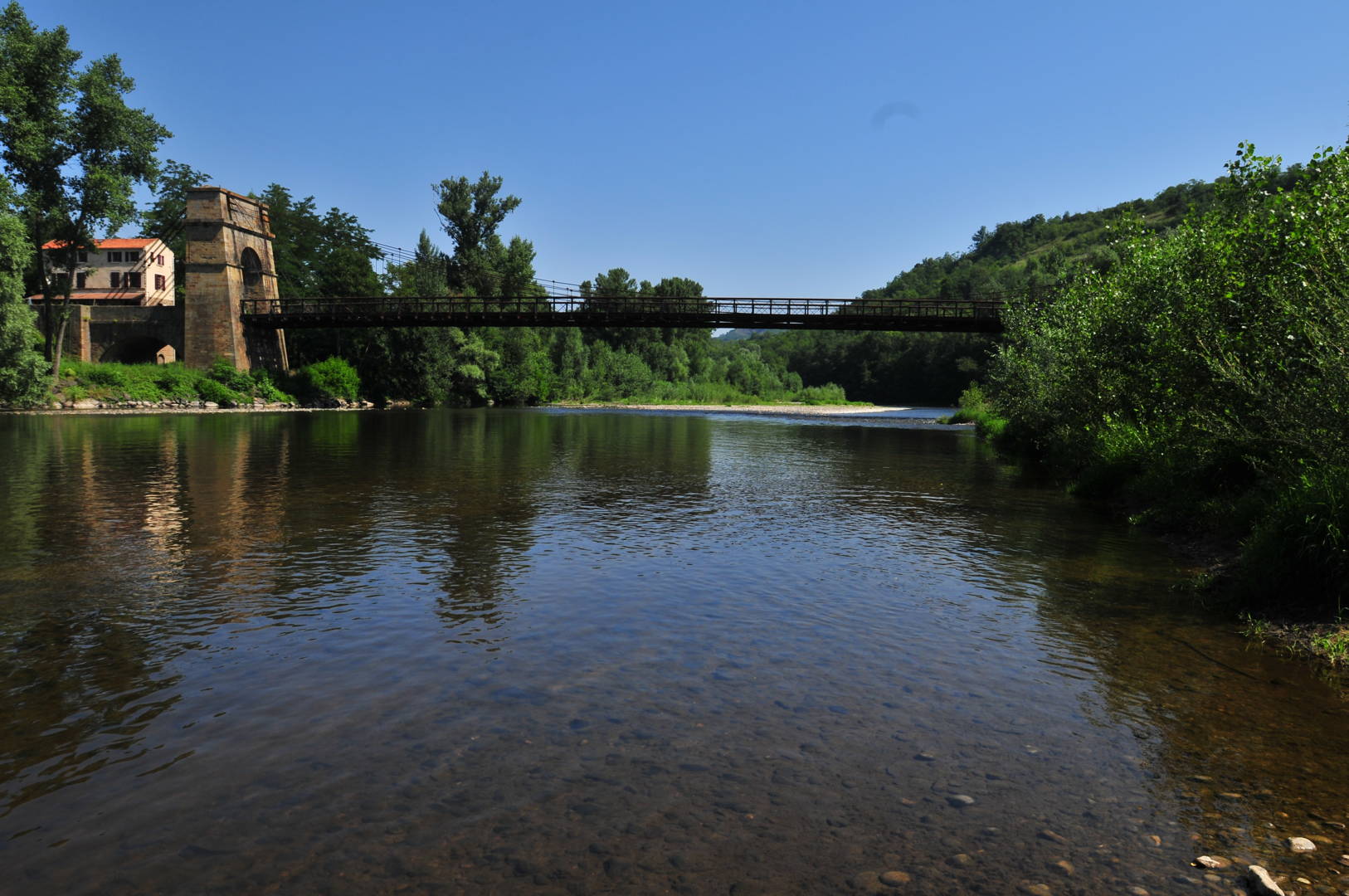 Le pont suspendu sur l’Allier reliait Issoire rive gauche et Parentignat rive droite