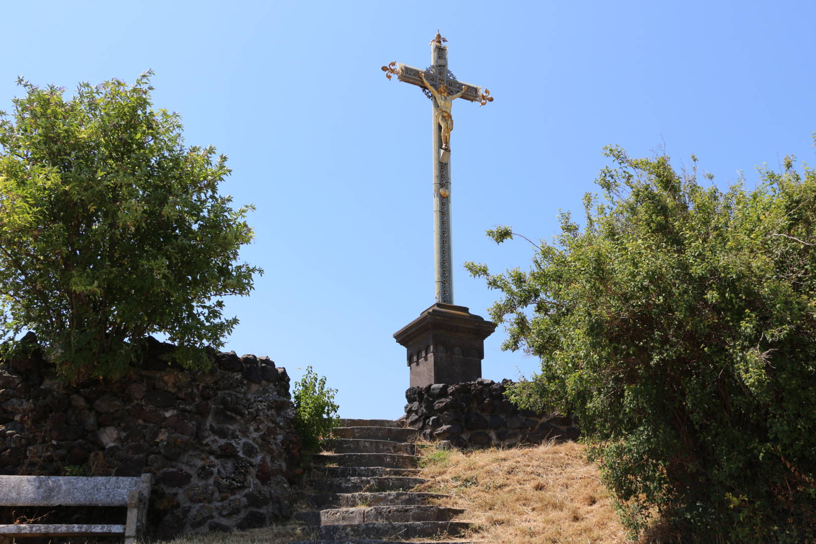 De cet endroit, vous avez une vue sur la plaine de la Limagne, l’une des plaines les plus fertiles de France, et une vue sur toute la chaîne des Puys dont le point culminant est le Puy de Dôme (1465 m d’altitude) ainsi que les Monts de la Madeleine et du Forez.