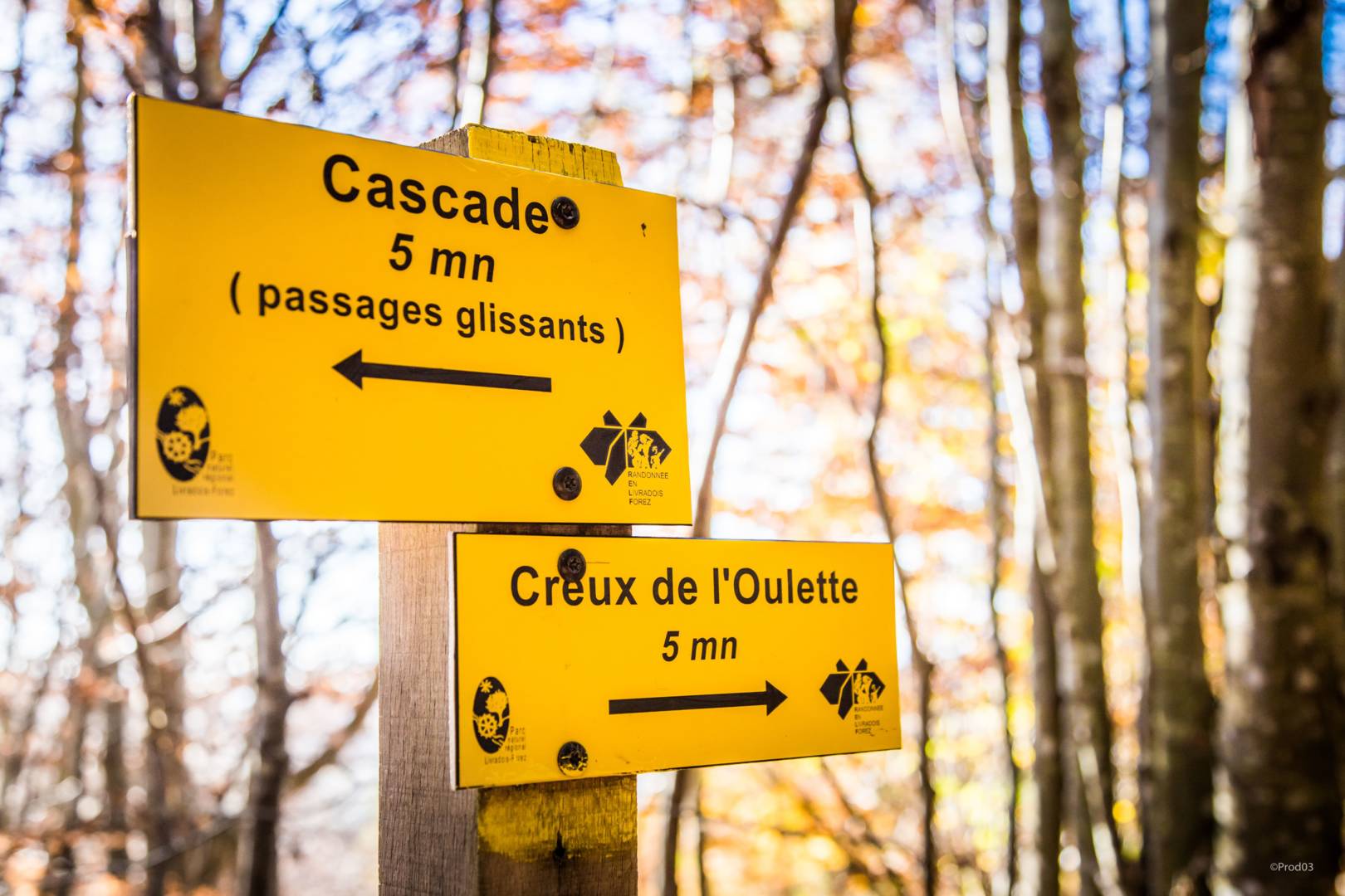 Après 15/20 min de marche, en pente (pensez à bien vous chausser ou vous aider d’un bâton !), vous découvrirez un des sites phares du territoire de la Vallée de l’Ance : la jolie cascade du Creux de l’Oulette !