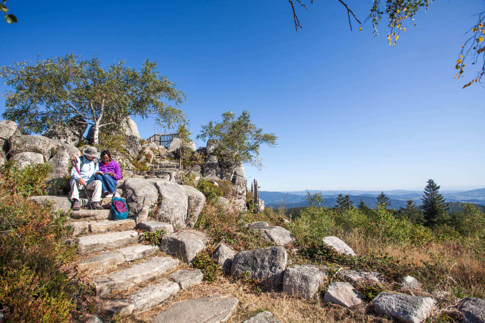 Vous découvrez un site très dégagé, où se dressent des blocs de pierre, et surtout, une vue extraordinaire à 360° sur toutes les montagnes avec deux tables d’orientation.