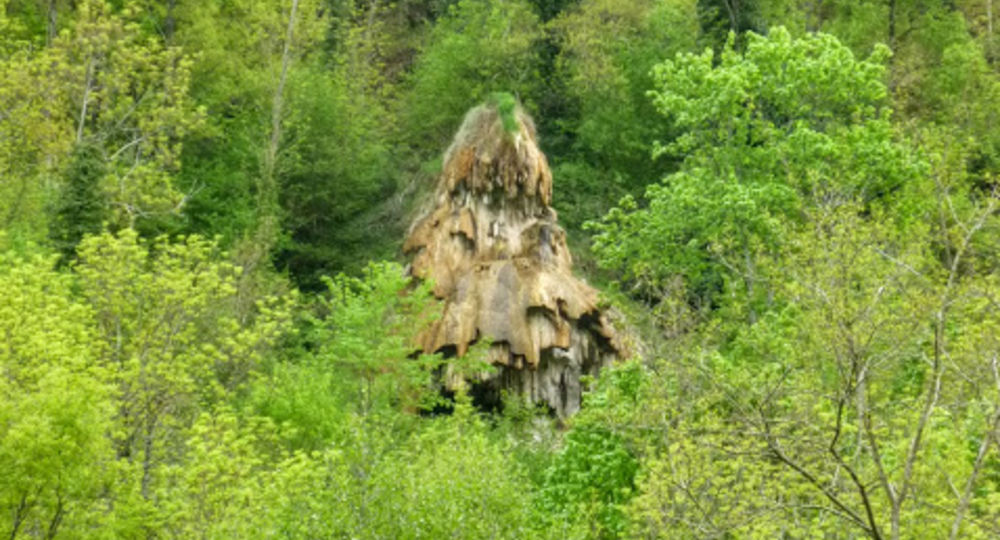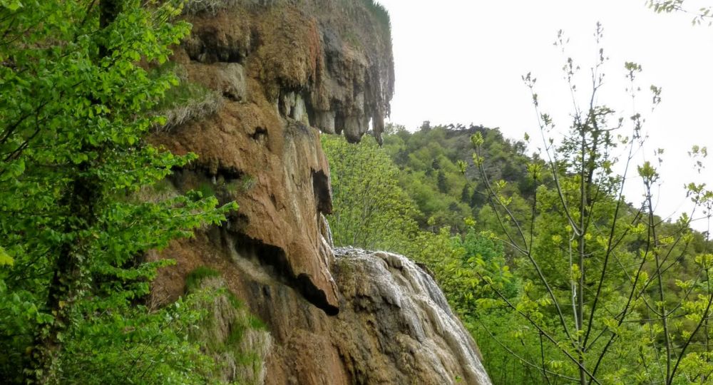 La « Tête de Lion » est en effet constituée d’une roche appelée travertin résultant du dépôt continuel de calcaire charrié par l’eau. Cette dernière qui provient d’infiltrations qui descendent dans le sous sol et qui au contact des chambres volcaniques récentes se sont réchauffées et se chargent de gaz carbonique.