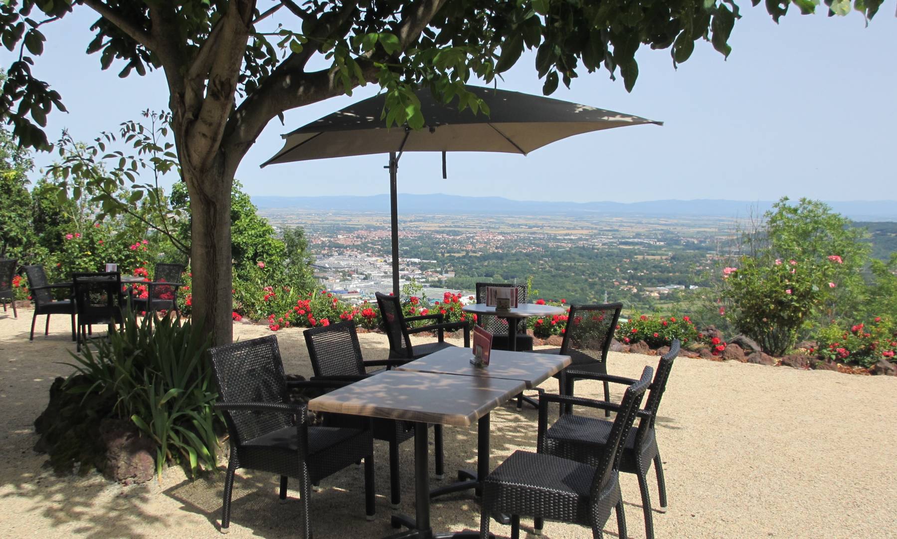 Nous vous proposons un accueil chaleureux, des produits locaux et de saison, cuisinés sur place et une terrasse panoramique offrant une vue sur la plaine de Limagne et les monts du Livradois Forez. Ouvert en juillet et août du mercredi au dimanche, midi et soir. Possibilité de recevoir des groupes toute l’année à partir de 20 personnes minimum (55 personnes maximum), d’organiser des repas de famille ou cocktails, des réunions de travail, des ateliers, etc. Devis sur demande. Parking privé.