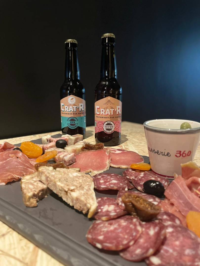 Vous y trouverez nos bières artisanales bien sûr mais pas que; vins d’Auvergne, apéritifs locaux (Gentiane, Pastis, Vermouth…), softs et boissons chaudes seront servies tout au long de la journée. La Brasserie 360 propose une carte pour se restaurer, quelque soit l’heure, vous pourrez découvrir des planches de fromages et charcuteries locales , des plats terroir, des gaufres et des glaces du Sancy.